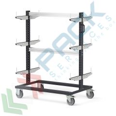 Carrello rastrelliera ideale per rispondere alle esigenze di magazzini e officine che gestiscono materiali allungati, Mis. 1067 L x 668 x 1357 H mm. Il carrello rastrelliera rappresenta una soluzione pratica ed efficiente per la movimentazione di elementi ingombranti. Carrello a sei braccia con struttura bifronte che permette di organizzare e trasportare facilmente tubi metallici, profilati, aste e componenti lineari di vario tipo, garantendo sempre la massima stabilità durante gli spostamenti. La configurazione a supporti multipli disposti su diversi livelli offre grande versatilità nel posizionamento dei carichi, mentre i rinforzi in alluminio conferiscono robustezza strutturale superiore. Il sistema di sicurezza integrato, composto da rivestimenti antiscivolo e dispositivi anticaduta, assicura che ogni elemento rimanga saldamente in posizione anche durante le manovre più impegnative. La mobilità è garantita da un set di quattro ruote appositamente studiate per l'uso industriale, con diametro di 125 mm e rivestimento in gomma che non lascia tracce sui pavimenti. La presenza di freni su due ruote girevoli permette di bloccare il carrello quando necessario, mentre le due ruote fisse assicurano direzionalità durante il traino. La maniglia ergonomica facilita le operazioni di movimentazione, rendendo il lavoro meno faticoso per l'operatore. Realizzato in lamiera verniciata con finitura bicolore grigio antracite e grigio chiaro, il carrello si inserisce perfettamente in qualsiasi ambiente lavorativo professionale. Con una capacità di carico di 300 kg, questo strumento si rivela indispensabile per ottimizzare la logistica interna e migliorare l'efficienza operativa. Il carrello viene fornito smontato per facilitare il trasporto e ridurre i costi di spedizione.