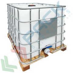 Cisternetta IBC in plastica, capacità 1000 Lt, rigenerata/usata prima scelta, realizzata in polietilene alta densità (HDPE) con otre colore neutro, coperchio superiore Mis. 150 o 225 mm (a seconda della disponibilità), valvola di scarico 3" e pallet in legno. IBC in plastica con Mis. 1000 L x 1200 P x 1170 H mm. Cisternetta in plastica ideale per lo stoccaggio e trasporto di sostanze liquide quali per benzina, prodotti chimici in genere. IBC usata/rigenerata NON idonea al contatto con alimenti. Cisterna 1000 litri NON omologata ADR/ONU. Cisterna dotata di predisposizione per sigillo di garanzia a filo.