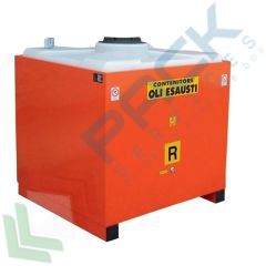 Contenitore per lo stoccaggio di oli esausti su 4 piedi senza coperchio, capacità 1000 Lt, mis. 1135 L x 1135 P x 1230 H mm. Stazione di stoccaggio praticissima e sicura nella gestione temporanea degli oli usati e dei fluidi alimentari, offre all'utente la soluzione più idonea alle proprie esigenze di raccolta, non solo in contesti industriali, ma anche in quelli relativi al settore alimentare e della ristorazione. Il contenitore di stoccaggio dispone di bacino esterno a tenuta stagna costruito in acciaio al carbonio da 3 mm e contenitore interno a tenuta stagna con boccaporto di carico a chiusura filettata, realizzato a stampaggio unico in polietilene stabilizzato U.V. per una maggiore protezione dagli agenti atmosferici. Colore arancio RAL 2004. In conformità alla normativa D. M. n. 392 del 16/05/1996 (regolamento recante norme tecniche relative alla eliminazione degli olii esausti) non può essere dotato di ruote.