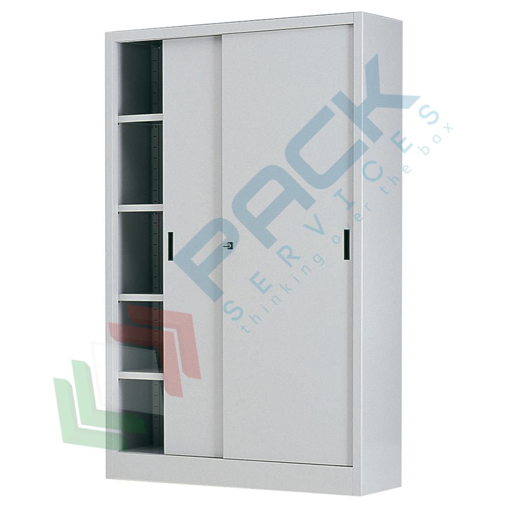 Armadietti in metallo per archiviazione ideali per ufficio con struttura portante realizzata in lamiera d’acciaio di prima scelta presso piegata e adeguatamente rinforzata spessore 8/10. Armadi ufficio con ante scorrevoli rinforzate, nella parte superiore. Le ante scorrono nelle guide del cappello mediante staffe zincate con cuscinetti a sfera rivestiti di nylon. Armadietti metallici con maniglie ad incasso in materiale plastico. Fermo di battuta che non consente la sovrapposizione delle ante. Sistema di chiusura con serratura a cilindro con doppia chiave in dotazione. Colore di serie del corpo e delle ante degli armadietti grigio RAL 7035. Materiale fornito smontato ed imballato in colli di cartone.