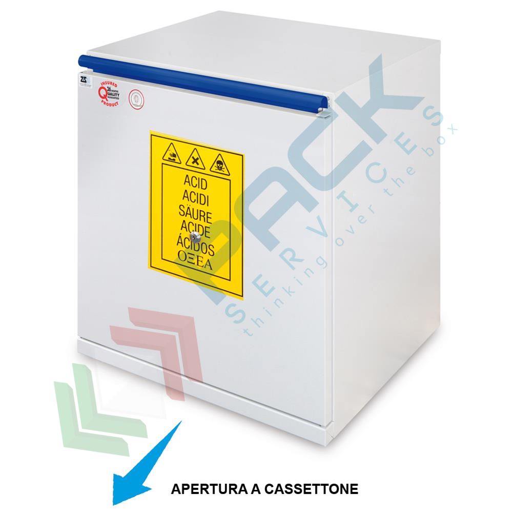 Armadio di sicurezza per lo stoccaggio combinato di prodotti chimici e acidi, Mis. 495 L x 520 P x 620 H mm, apertura a cassettone