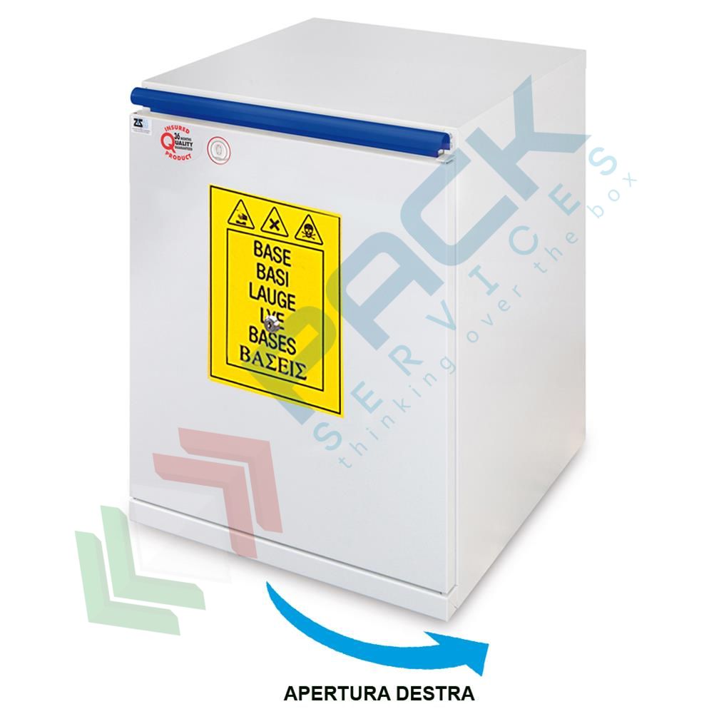 Armadio di sicurezza per lo stoccaggio combinato di prodotti chimici e basi, Mis. 395 L x 520 P x 620 H mm, apertura a destra