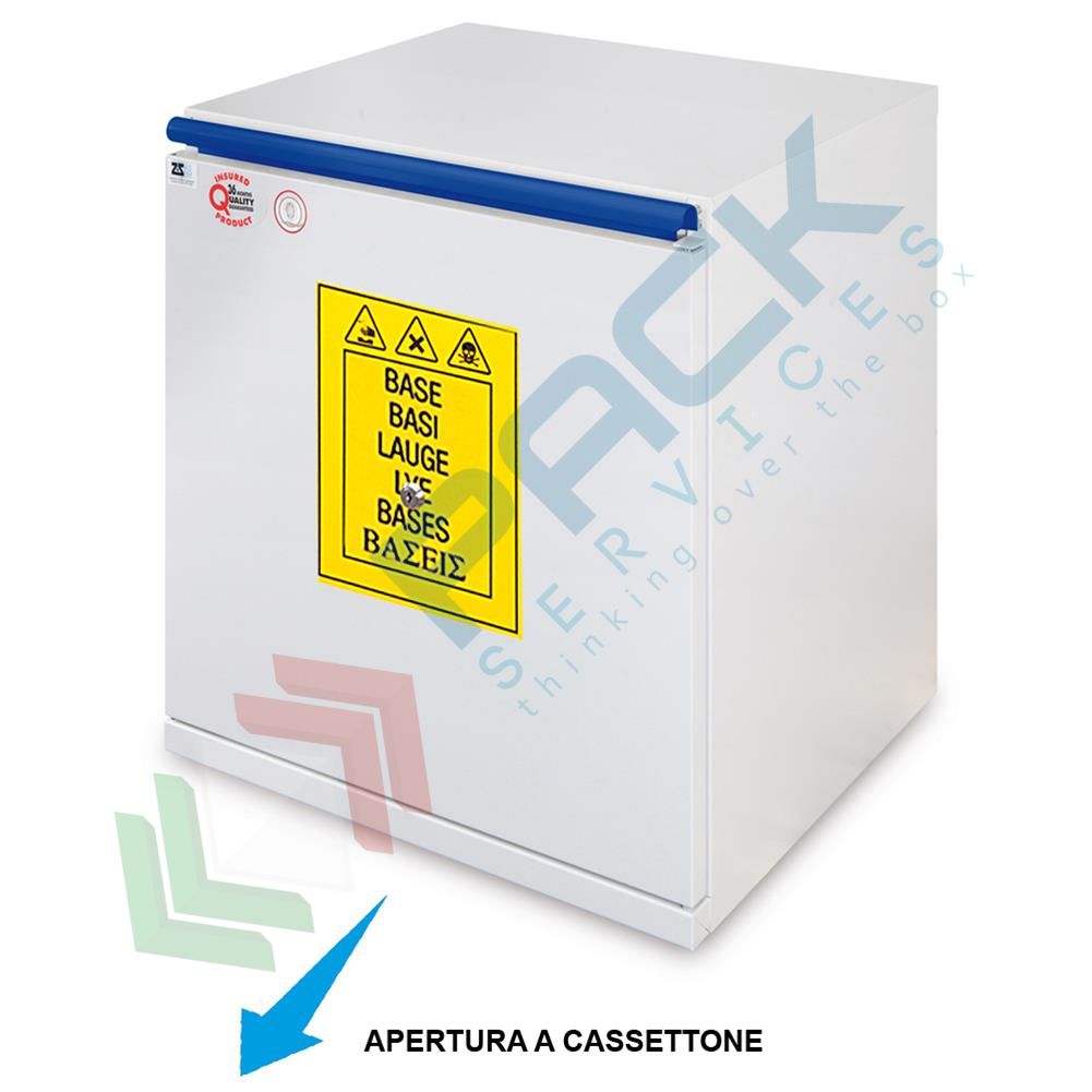 Armadio di sicurezza per lo stoccaggio combinato di prodotti chimici e basi, Mis. 495 L x 520 P x 620 H mm, apertura a cassettone