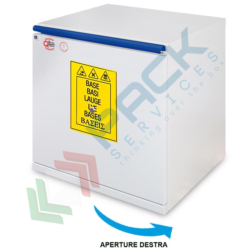 Armadio di sicurezza per lo stoccaggio combinato di prodotti chimici e basi, Mis. 595 L x 520 P x 720 H mm, apertura a destra