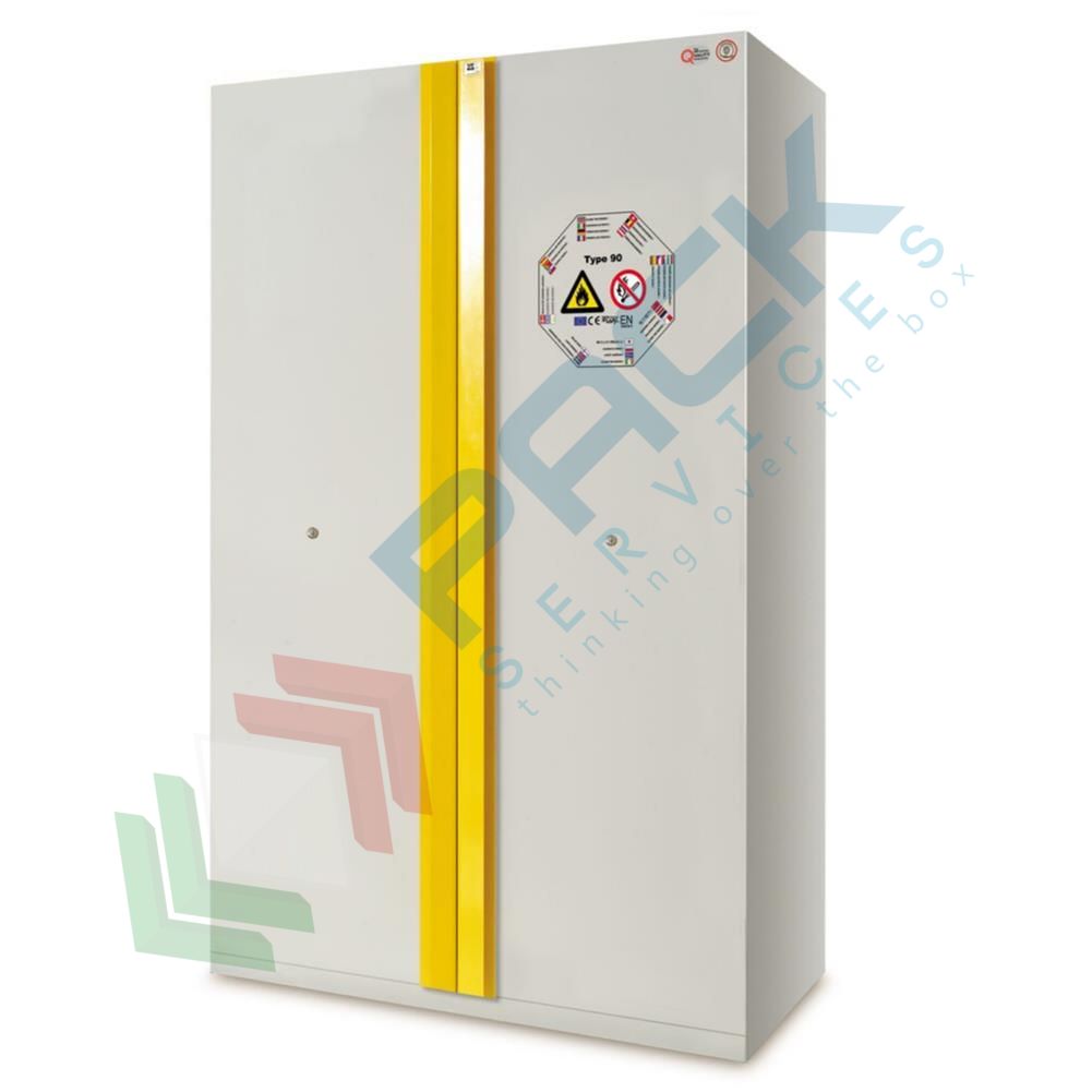 Armadio di sicurezza per infiammabili Type 90, Mis. 1200 L x 600 P x 2050 H mm, ripiani in acciaio verniciato, doppia anta ad incavo, colore grigio