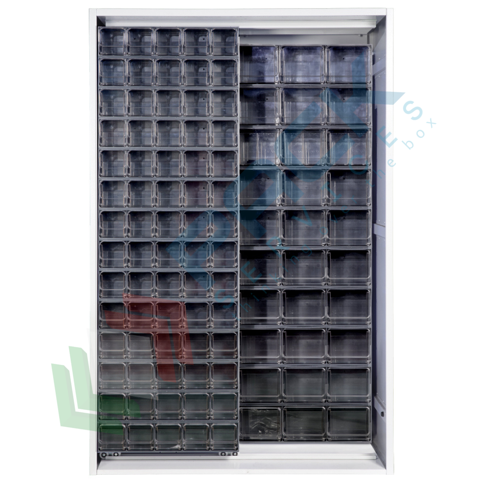 L’armadio è allestito con un totale di 90 cassetti, così suddivisi: