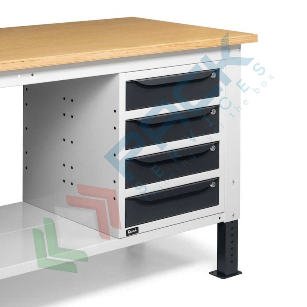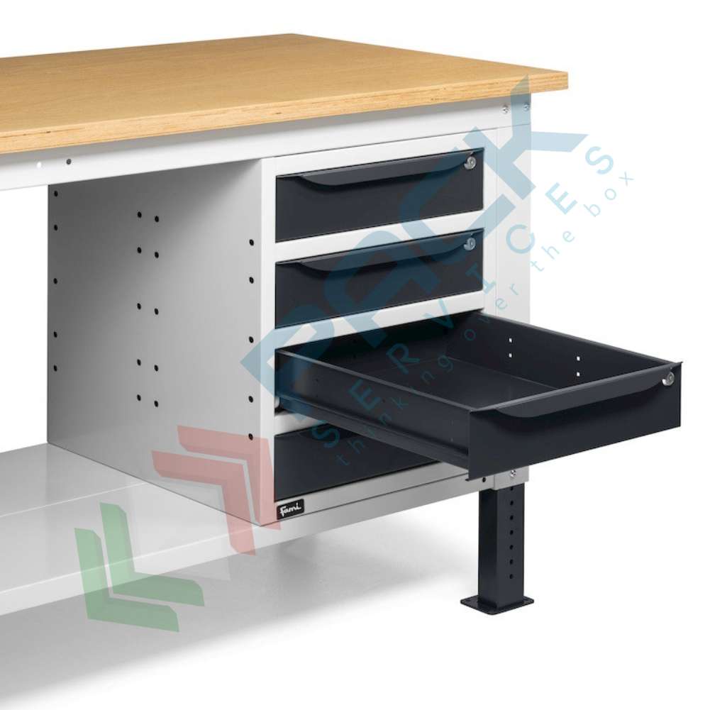• Cassettiera con 4 cassetti, 50 cm, colore grigio antracite RAL 7016 + grigio chiaro RAL 7035 ( x 1)