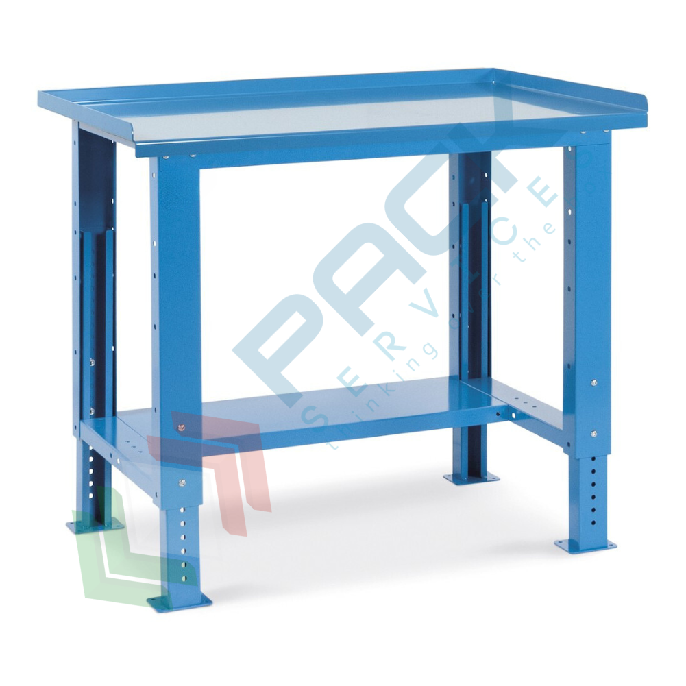Banco da lavoro in acciaio, realizzato con piano in acciaio, Mis. 1031 L x 704 P x 737/1112 H mm, con gambe regolabili in altezza. Carico massimo del prodotto 1000 Kg. Fornito smontato. Il banco da lavoro con gambe regolabili consente di modificare l'altezza del piano di lavoro in base alle diverse operazioni da effettuare e permette all'operatore di lavorare sia in posizione seduta che in piedi. Il banco con piano in acciaio è una componente fondamentale nell'officina, in reparto o nelle spedizioni perché consente di raccogliere ordinatamente in un unico luogo tutto il necessario per il lavoro. La postazione di lavoro può essere trasformata nel tempo a seconda delle necessità dell'utilizzatore, infatti può essere arricchito da cassetti, armadi con porta o semipiani per realizzare una postazione di lavoro professionale che si adatta alle mutevoli esigenze lavorative. Il piano in acciaio è resistente ad oli e liquidi non corrosivi. Colore lamiera in acciaio blu RAL 5012.