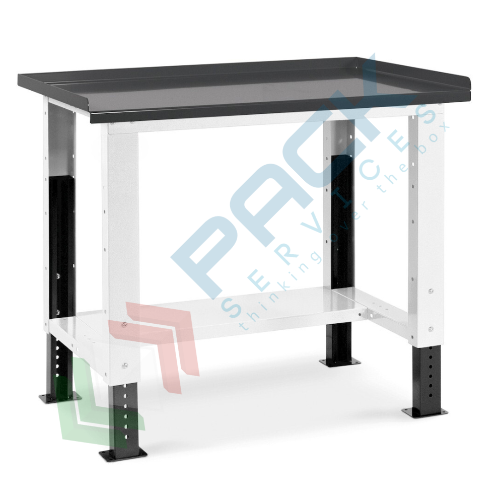 Banco da lavoro in acciaio, realizzato con piano in acciaio, Mis. 1031 L x 704 P x 737/1112 H mm, con gambe regolabili in altezza. Carico massimo del prodotto 1000 Kg. Fornito smontato. Il banco da lavoro con gambe regolabili consente di modificare l'altezza del piano di lavoro in base alle diverse operazioni da effettuare e permette all'operatore di lavorare sia in posizione seduta che in piedi. Il banco con piano in acciaio è una componente fondamentale nell'officina, in reparto o nelle spedizioni perché consente di raccogliere ordinatamente in un unico luogo tutto il necessario per il lavoro. La postazione di lavoro può essere trasformata nel tempo a seconda delle necessità dell'utilizzatore, infatti può essere arricchito da cassetti, armadi con porta o semipiani per realizzare una postazione di lavoro professionale che si adatta alle mutevoli esigenze lavorative. Il piano in acciaio è resistente ad oli e liquidi non corrosivi. Colore lamiera in acciaio antracite RAL 7016 + grigio RAL 7035.