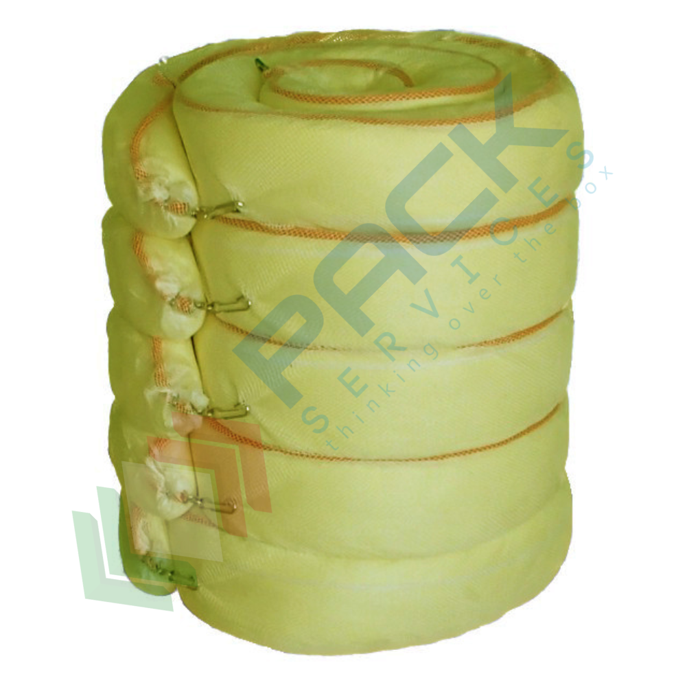 Impiego: Circoscrivere completamente l'area interessata collegando le barriere tra loro con i moschettoni. La barriera così costruita svolge la duplice funzione di contenimento e di assorbimento. L'azione assorbente si svolge in brevissimo tempo fino a saturazione. Adatti per un impiego preventivo in luoghi di potenziali perdite attorno ai macchinari o per fronteggiare vasti sversamenti.