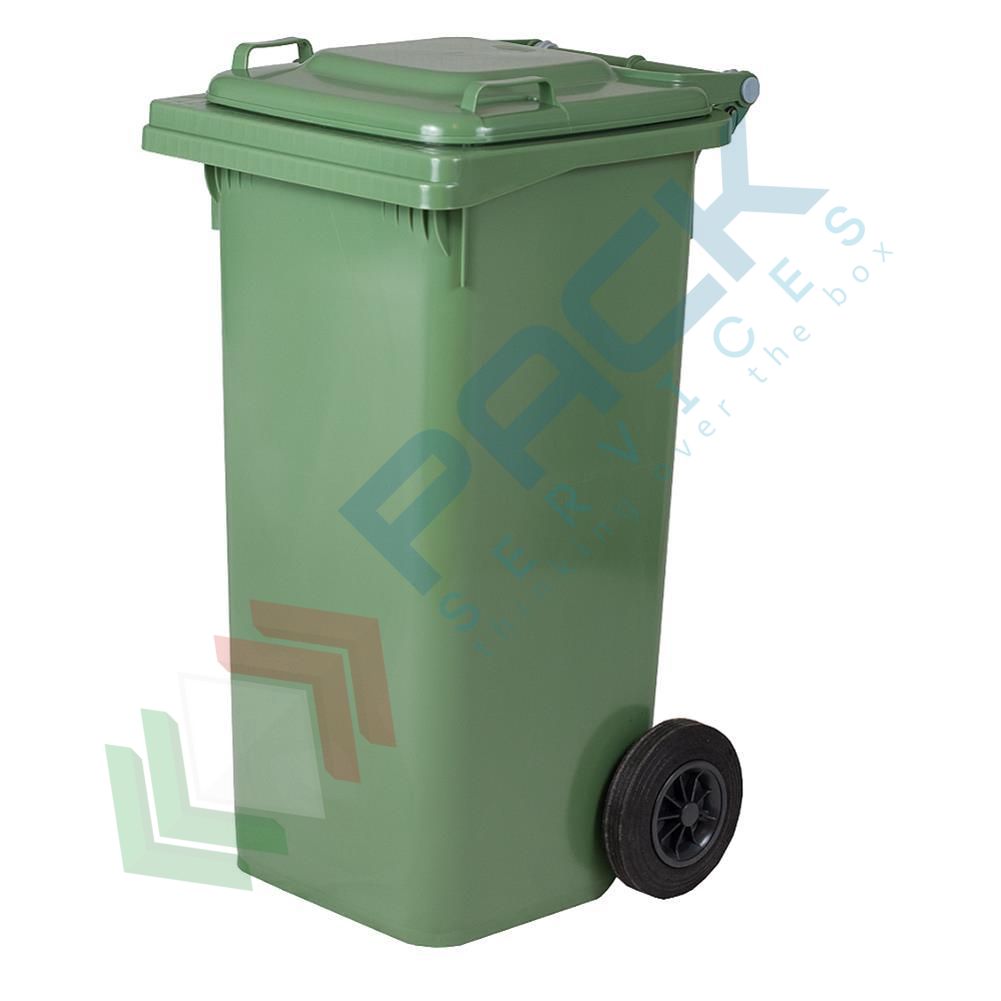 Bidone immondizia in plastica ideale per la raccolta differenziata rifiuti e di materiali da recupero per il riciclo, capacità 120 Litri, Mis. 500 L x 550 P x 940 H mm. Bidone raccolta differenziata realizzato in polietilene alta densità (HPDE), materiale utilizzato di prima fusione, garantito e certificato TUV- UNI EN 840, totalmente riciclabile, robusto e resistente ai raggi U.V. e infrarossi, agli acidi ed alcali, alle alte e basse temperature. Il bidone per rifiuti ha il coperchio incernierato a libro ribaltabile sul retro, dotato di assale in metallo per due ruote da mm 200 in gomma con innesto "a naso"; bordo rinforzato a pettine atto al sollevamento per lo svuotamento automatico. Il sistema di fissaggio delle ruote all'albero zincato, è studiato per ridurre al minimo gli spazi tra le ruote e il bidone, evitando l'eccessivo rumore durante il trasporto e rotolamento. Il bidone raccolta differenziata è inoltre dotato di particolari gommini di ammortizzazione sul coperchio che permettono di attutire l'urto e rumore in fase di apertura e chiusura. Il cassonetto per la raccolta differenziata dispone di attacco a pettine per il sollevamento meccanico. Bidone rifiuti colore verde.