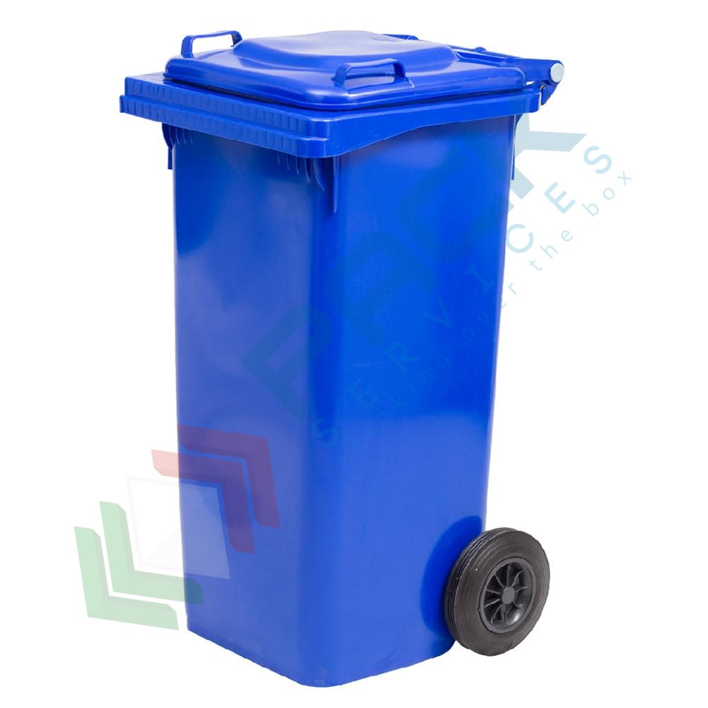 Bidone immondizia in plastica ideale per la raccolta differenziata rifiuti e di materiali da recupero per il riciclo, capacità 240 Litri, Mis. 580 L x 720 P x 1060 H mm. Bidone raccolta differenziata realizzato in polietilene alta densità (HPDE), materiale utilizzato di prima fusione, garantito e certificato TUV- UNI EN 840, totalmente riciclabile, robusto e resistente ai raggi U.V. e infrarossi, agli acidi ed alcali, alle alte e basse temperature. Il bidone per rifiuti ha il coperchio incernierato a libro ribaltabile sul retro, dotato di assale in metallo per due ruote da mm 200 in gomma con innesto "a naso"; bordo rinforzato a pettine atto al sollevamento per lo svuotamento automatico. Il sistema di fissaggio delle ruote all'albero zincato, è studiato per ridurre al minimo gli spazi tra le ruote e il bidone, evitando l'eccessivo rumore durante il trasporto e rotolamento. Il bidone raccolta differenziata è inoltre dotato di particolari gommini di ammortizzazione sul coperchio che permettono di attutire l'urto e rumore in fase di apertura e chiusura. Il cassonetto per la raccolta differenziata dispone di attacco a pettine per il sollevamento meccanico. Bidone rifiuti colore blu.