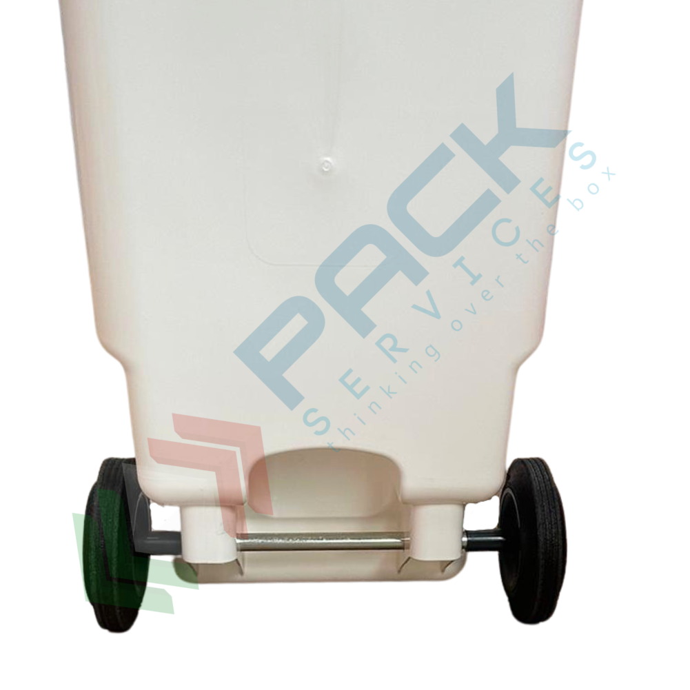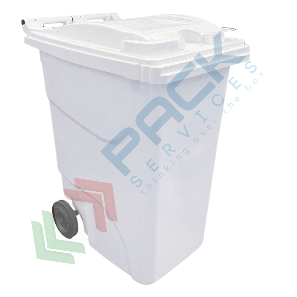 Bidone immondizia in plastica ideale per la raccolta differenziata rifiuti e di materiali da recupero per il riciclo, capacità 360 Litri, Mis. 860 L x 625 P x 1120 H mm, capacità di carico 140 Kg. Bidone raccolta differenziata realizzato in polietilene alta densità (HPDE), di prima fusione garantito, certificato, totalmente riciclabile, resistente ai raggi U.V. e infrarossi, agli acidi ed alcali, alle alte e basse temperature. Il bidone per rifiuti ha 2 ruote a naso in gomma piena 200 mm, assale in acciaio di qualità zincato elettroliticamente e coperchio incernierato a libro ribaltabile sul retro e dotato di due prese per il sollevamento. Il bidone è a norma UNI EN 840 (UNI 10571 e DIN 30740). Il cassonetto per la raccolta differenziata dispone di attacco a pettine per il sollevamento meccanico. Bidone per rifiuti colore bianco.
