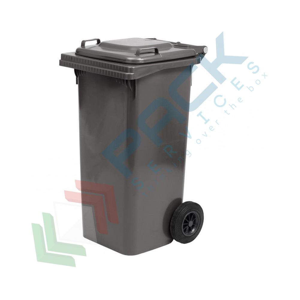 Bidone immondizia in plastica ideale per la raccolta differenziata rifiuti e di materiali da recupero per il riciclo, capacità 80 Litri, Mis. 500 L x 450 P x 920 H mm, portata max 50 Kg. Bidone raccolta differenziata realizzato in polietilene alta densità (HPDE), materiale utilizzato di prima fusione, garantito e certificato TUV- UNI EN 840, totalmente riciclabile, robusto e resistente ai raggi U.V. e infrarossi, agli acidi ed alcali, alle alte e basse temperature. Il bidone per rifiuti ha il coperchio incernierato a libro ribaltabile sul retro ed è dotato di due maniglie per il sollevamento. E' dotato inoltre di ruote robuste in gomma piena che assicurano facilità nell'utilizzo e nella movimentazione. Il cassonetto per la raccolta differenziata dispone di attacco a pettine per il sollevamento meccanico. Bidone per rifiuti colore grigio scuro.