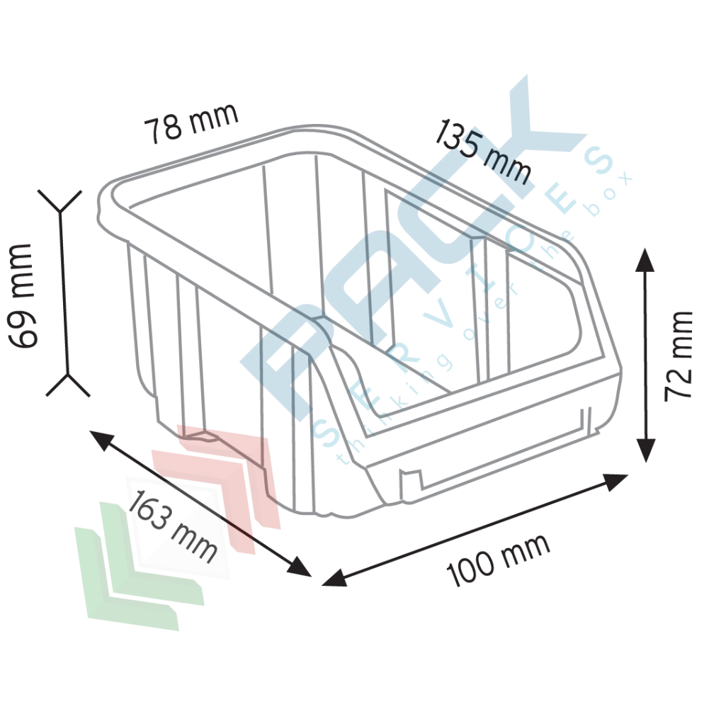 Cassetta bocca di lupo sovrapponibile, realizzata in plastica (PP) polipropilene, capacità 0,75 Litri, Mis. esterne 100 L x 163 P x 72 H mm, Mis. interne 78 L x 135 P x 69 H mm. I contenitori a bocca di lupo sono la soluzione ideale ad ogni problema di stoccaggio, sono indicati per minuteria, articoli di ferramenta e piccoli oggetti sfusi. Le bocche di lupo in plastica consentono di avere sempre a portata di mano e ben in vista il contenuto, rendendolo prelevabile con estrema facilità.