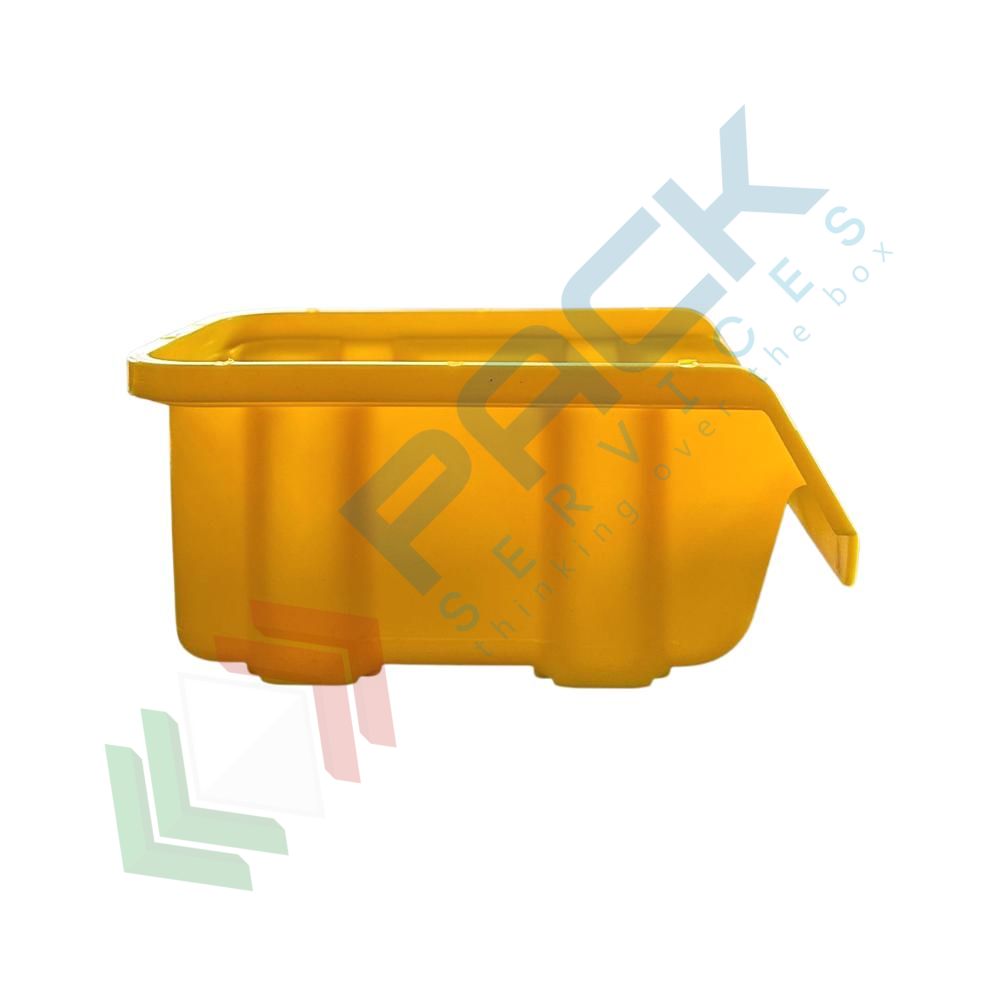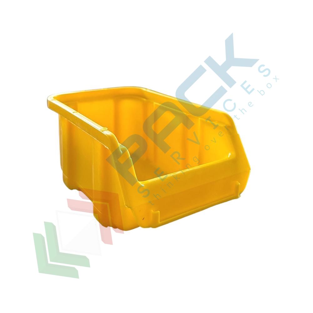 Contenitore bocca di lupo sovrapponibile, in plastica (PP), capacità 0,75 Litri, Mis. 100 L x 163 P x 72 H mm, con linguetta posteriore, colore giallo