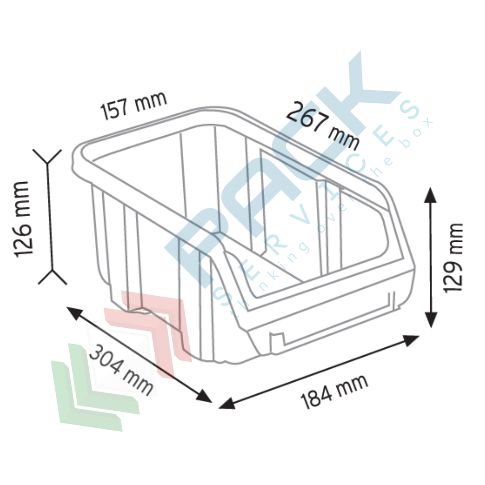 • Mis. esterna 184 L x 304 P x 129 H mm