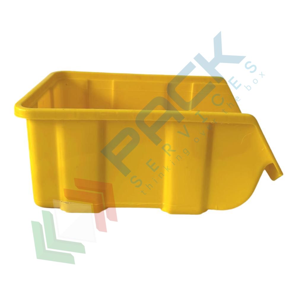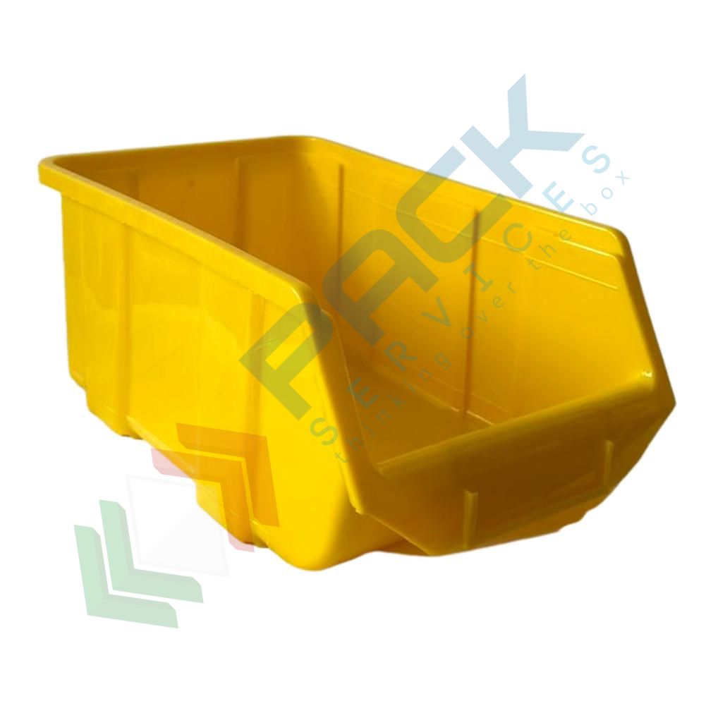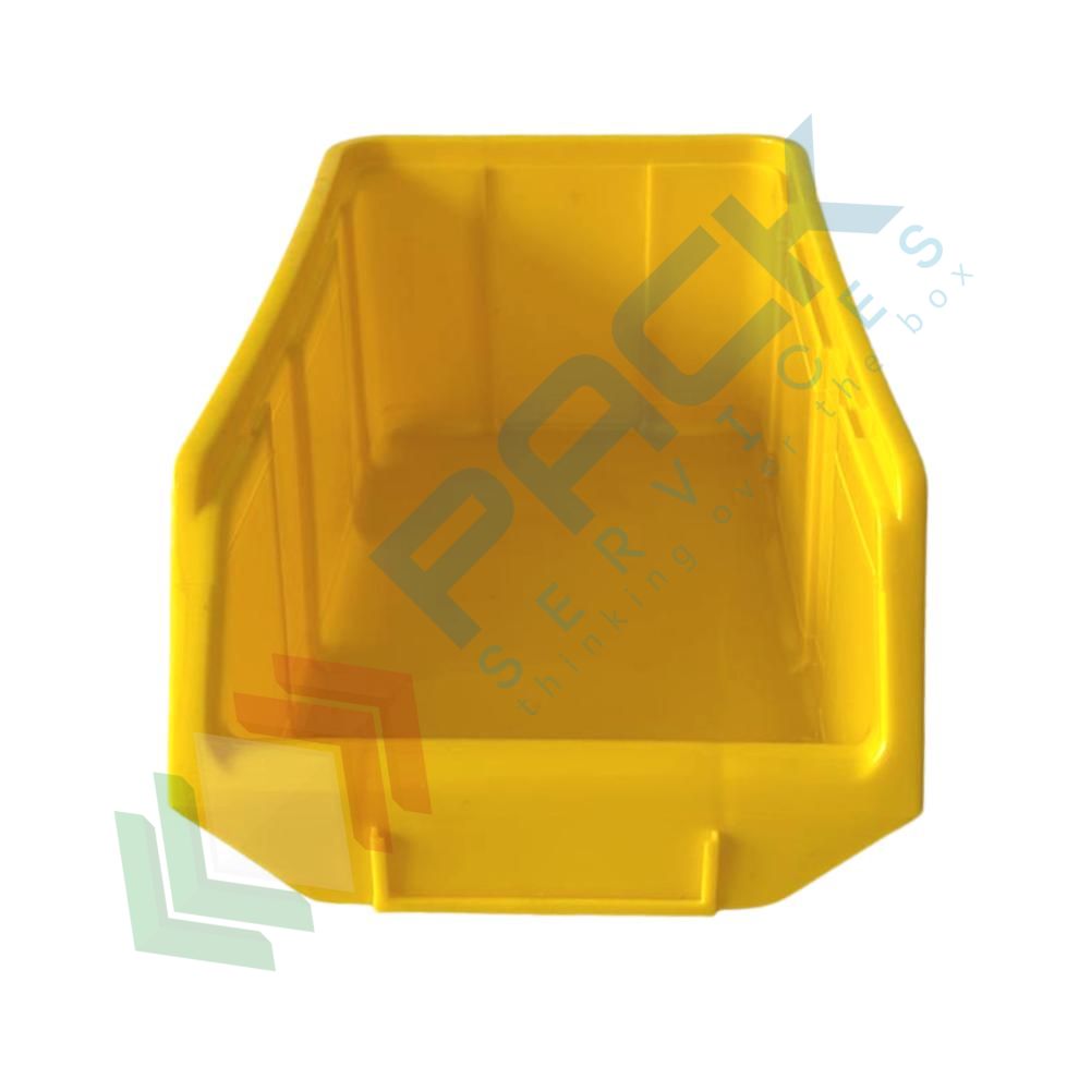 Contenitore bocca di lupo sovrapponibile, in plastica (PP), capacità 5,25 Litri, Mis. 184 L x 304 P x 129 H mm, con linguetta posteriore, colore giallo