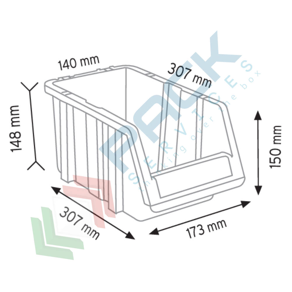 Cassetta bocca di lupo componibile e sovrapponibile realizzata in plastica (PP) polipropilene, capacità 5,25 Litri, Mis. esterna 173 L x 307 P x 150 H mm, Mis. interna 140 L x 252 P x 148 H mm. Il contenitore a bocca di lupo è la soluzione ideale ad ogni problema di stoccaggio: indicato per minuteria, articoli di ferramenta e piccoli oggetti sfusi. La cassetta in plastica bocca di lupo consente di avere sempre a portata di mano e ben in vista il contenuto, rendendolo prelevabile con estrema facilità. Il contenitore in plastica è componibile attraverso un perno (Cod. PSSBL-GN) applicabile sui 4 lati superiori o inferiori della cassetta; I perni permettono infatti di creare una vera a propria parete in magazzino senza alcuna necessità di ripiani o scaffali. Grande profondità per una sistemazione ottimale nelle scaffalature. Movimentazione agevolata grazie alle maniglie che garantiscono una impugnatura sicura, anche con mani guantate.