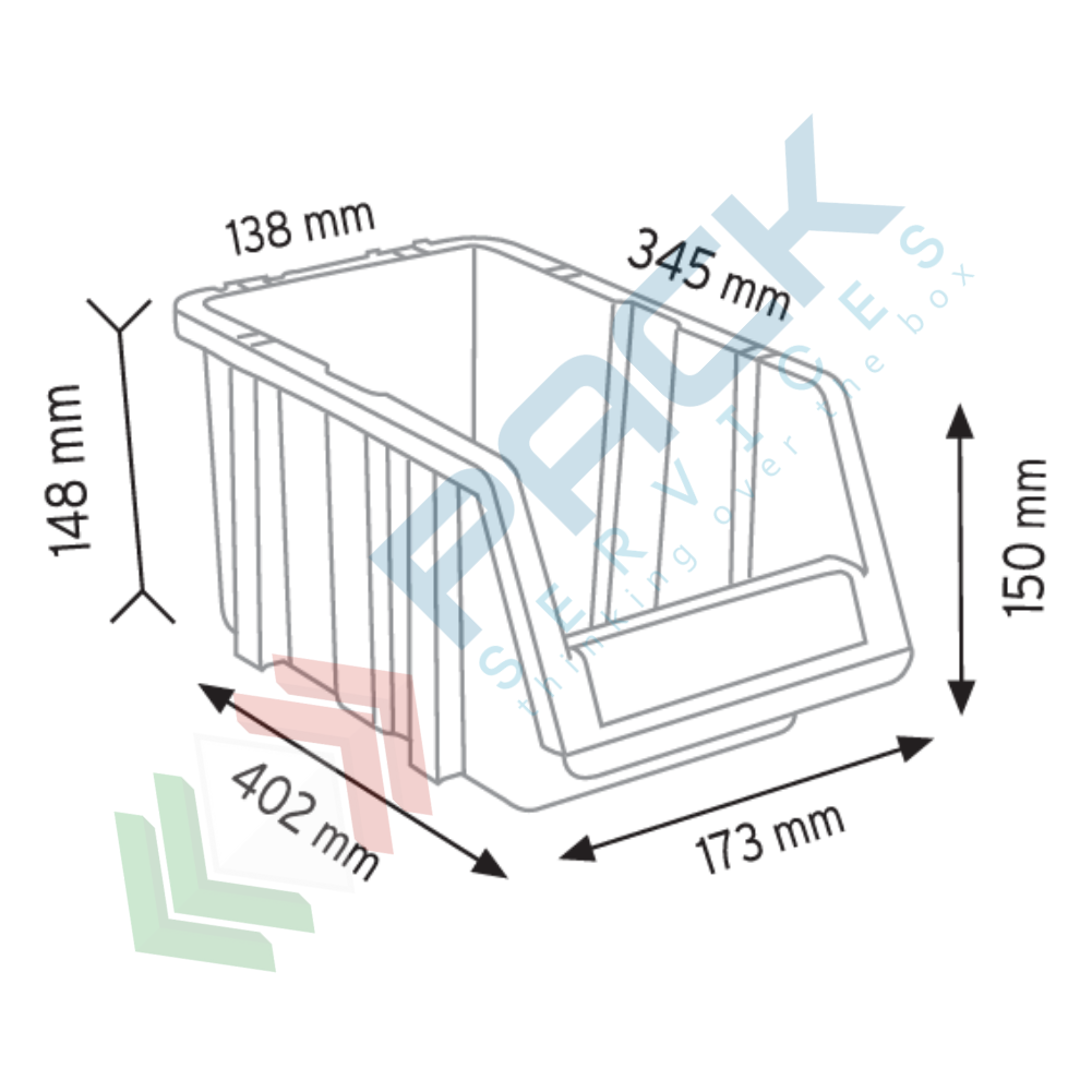 Cassetta bocca di lupo componibile e sovrapponibile realizzata in plastica (PP) polipropilene, capacità 7 Litri, Mis. esterna 173 L x 402 P x 150 H mm, Mis. interna 138 L x 345 P x 148 H mm. Il contenitore a bocca di lupo è la soluzione ideale ad ogni problema di stoccaggio: indicato per minuteria, articoli di ferramenta e piccoli oggetti sfusi. La cassetta in plastica bocca di lupo consente di avere sempre a portata di mano e ben in vista il contenuto, rendendolo prelevabile con estrema facilità. Il contenitore in plastica è componibile attraverso un perno (Cod. PSSBL-GN) applicabile sui 4 lati superiori o inferiori della cassetta; I perni permettono infatti di creare una vera a propria parete in magazzino senza alcuna necessità di ripiani o scaffali. Grande profondità per una sistemazione ottimale nelle scaffalature. Movimentazione agevolata grazie alle maniglie che garantiscono una impugnatura sicura, anche con mani guantate.