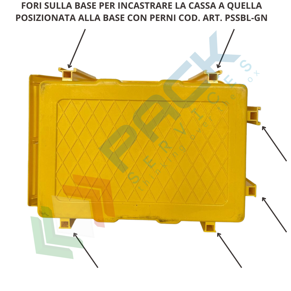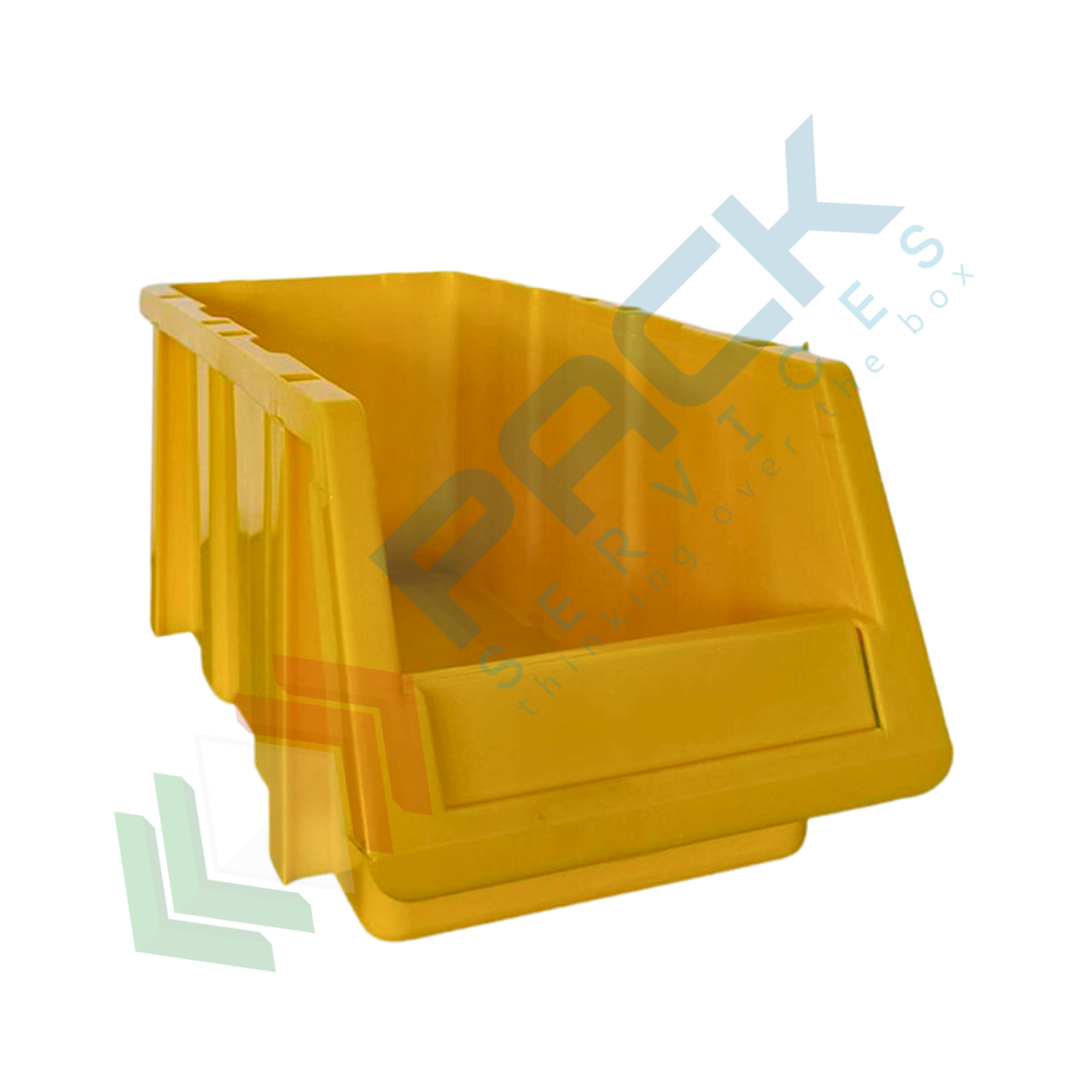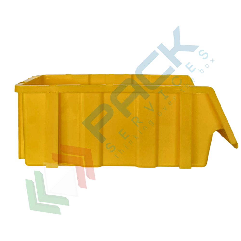 Cassa bocca di lupo in plastica (PP), sovrapponibile e componibile, capacità 7 Lt, Mis. 173 L x 402 P x 150 H mm, colore giallo