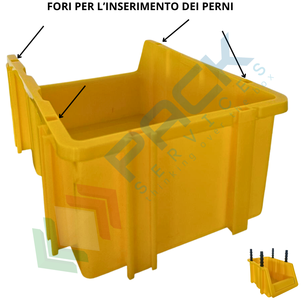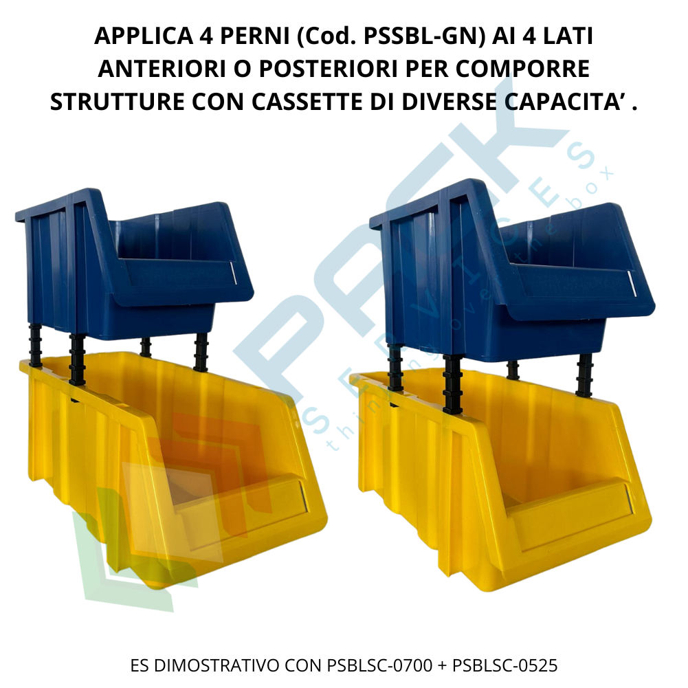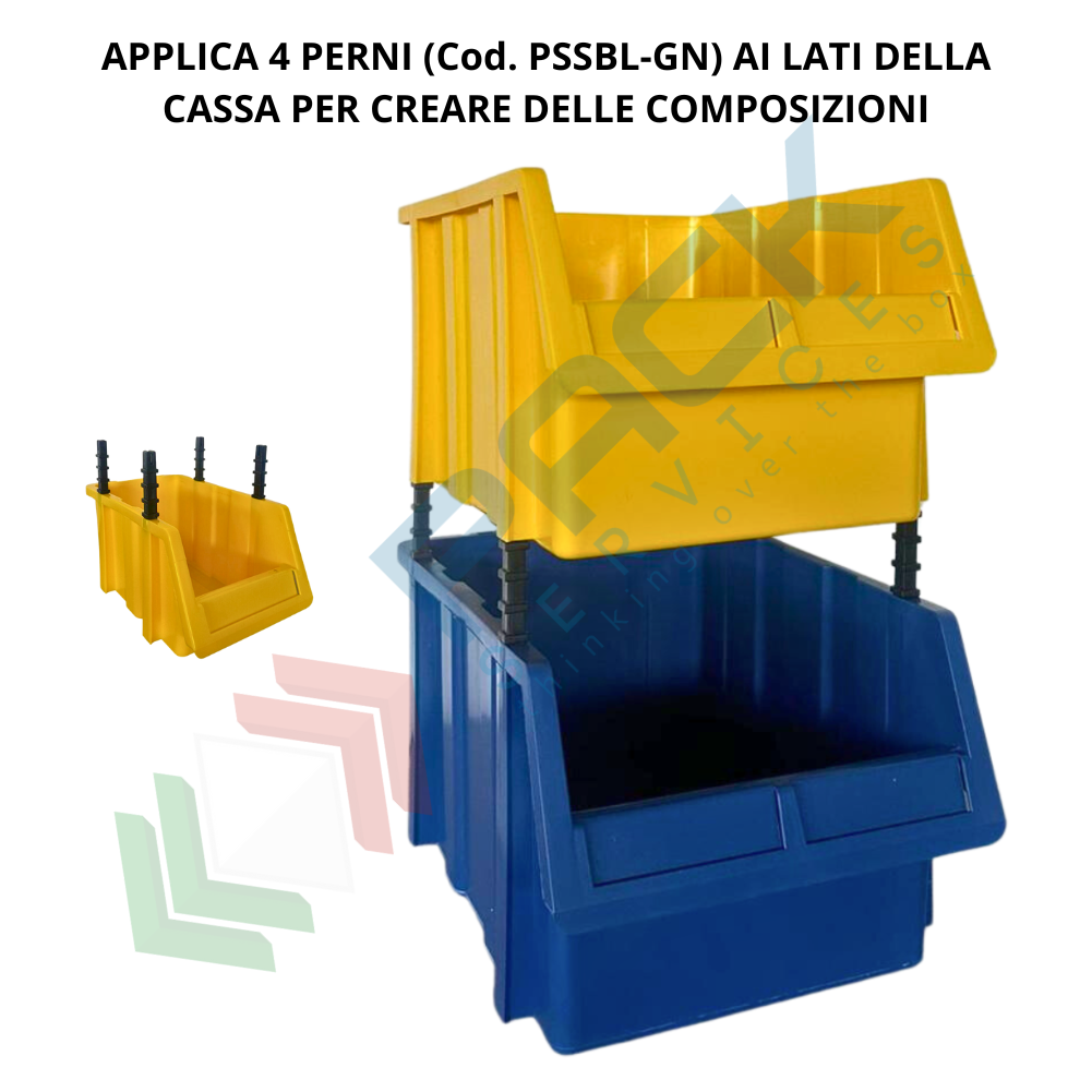 Le portaminuteria da 7 Lt possono essere assemblate con quelle della stessa capacità ma sono compatibili anche con le cassette da 5,25 Lt (Cod. Art. PSBLSC-0525) poichè hanno stessa larghezza (173 mm); Le cassette da 7 Litri dovranno essere alla base della struttura che andrai a creare. Le cassette più piccole potranno essere posizionate nella parte anteriore o posteriore, poichè la bocca di lupo da 7 Litri dispone di più fori laterali per adattarsi ad ogni tua esigenza. Colore giallo.