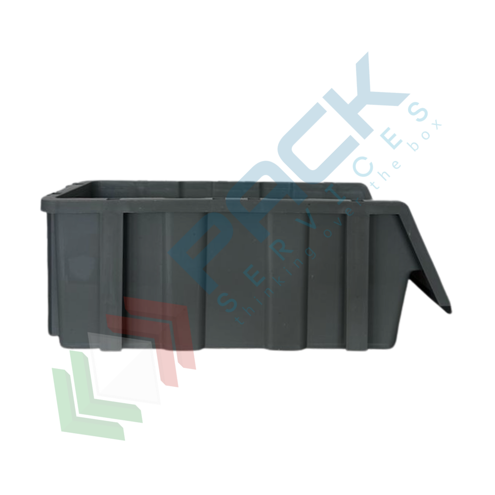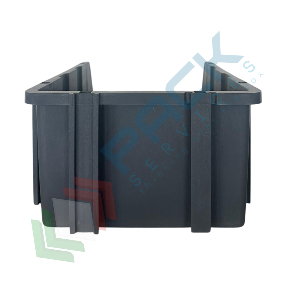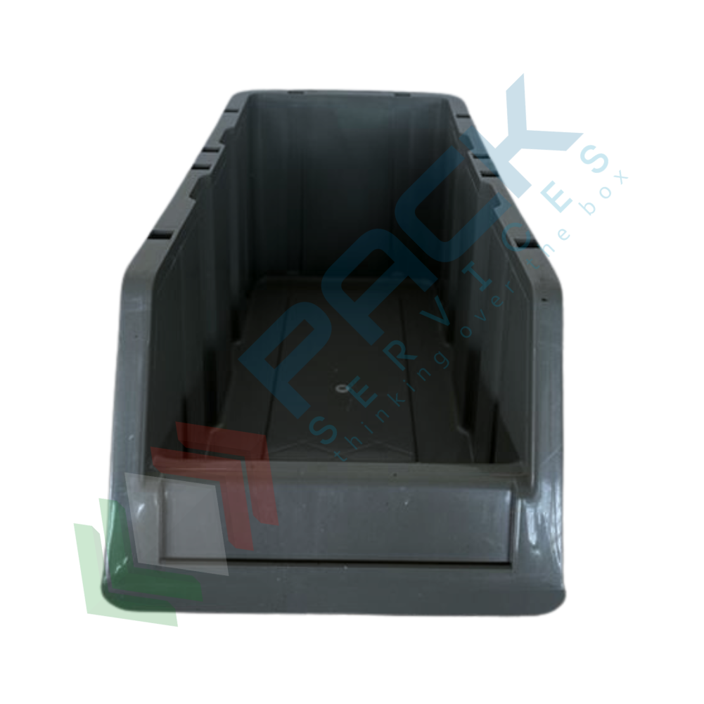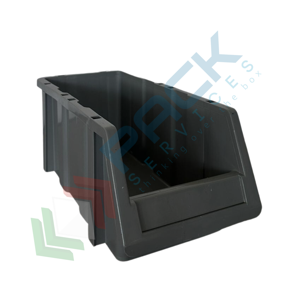 Cassa bocca di lupo in plastica (PP), sovrapponibile e componibile, capacità 7 Lt, Mis. 173 L x 402 P x 150 H mm, colore grigio