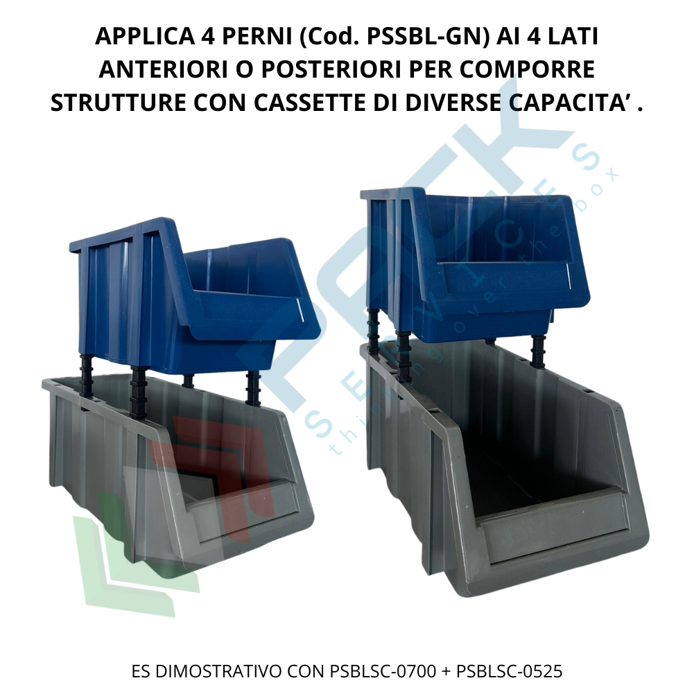 Le portaminuteria da 7 Lt possono essere assemblate con quelle della stessa capacità ma sono compatibili anche con le cassette da 5,25 Lt (Cod. Art. PSBLSC-0525) poichè hanno stessa larghezza (173 mm); Le cassette da 7 Litri dovranno essere alla base della struttura che andrai a creare. Le cassette più piccole potranno essere posizionate nella parte anteriore o posteriore, poichè la bocca di lupo da 7 Litri dispone di più fori laterali per adattarsi ad ogni tua esigenza. Colore grigio.