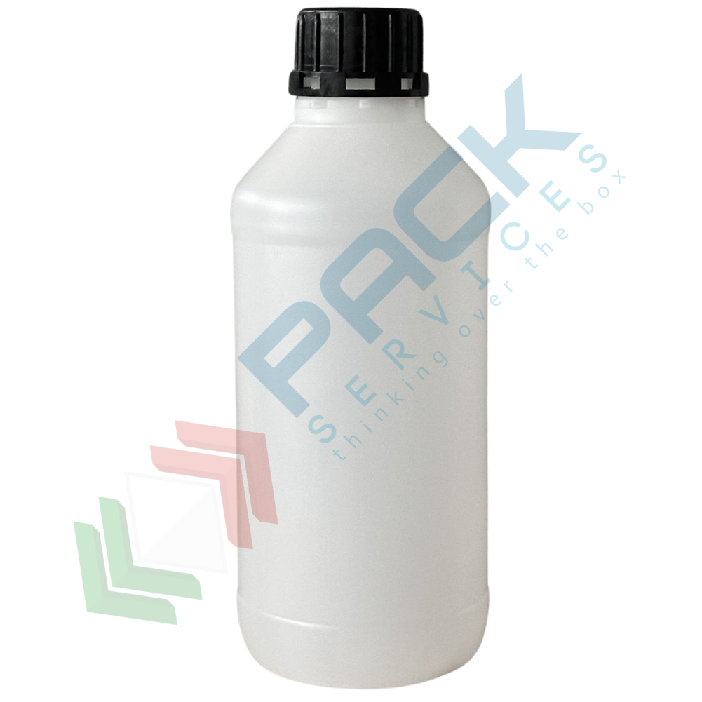 Bottiglia in plastica a bocca larga, sezione cilindrica, capacità 1000 ml, realizzata in polietilene alta densità (HDPE), Mis. Ø 90 x 229 H mm. Bottiglietta a collo largo tappo a vite con sigillo Ø 30 mm (incluso). Bottiglia cilindrica ideale per gli impieghi in cui non debba essere consentita l'apertura indesiderata nelle fasi successive al riempimento. Colore neutro.