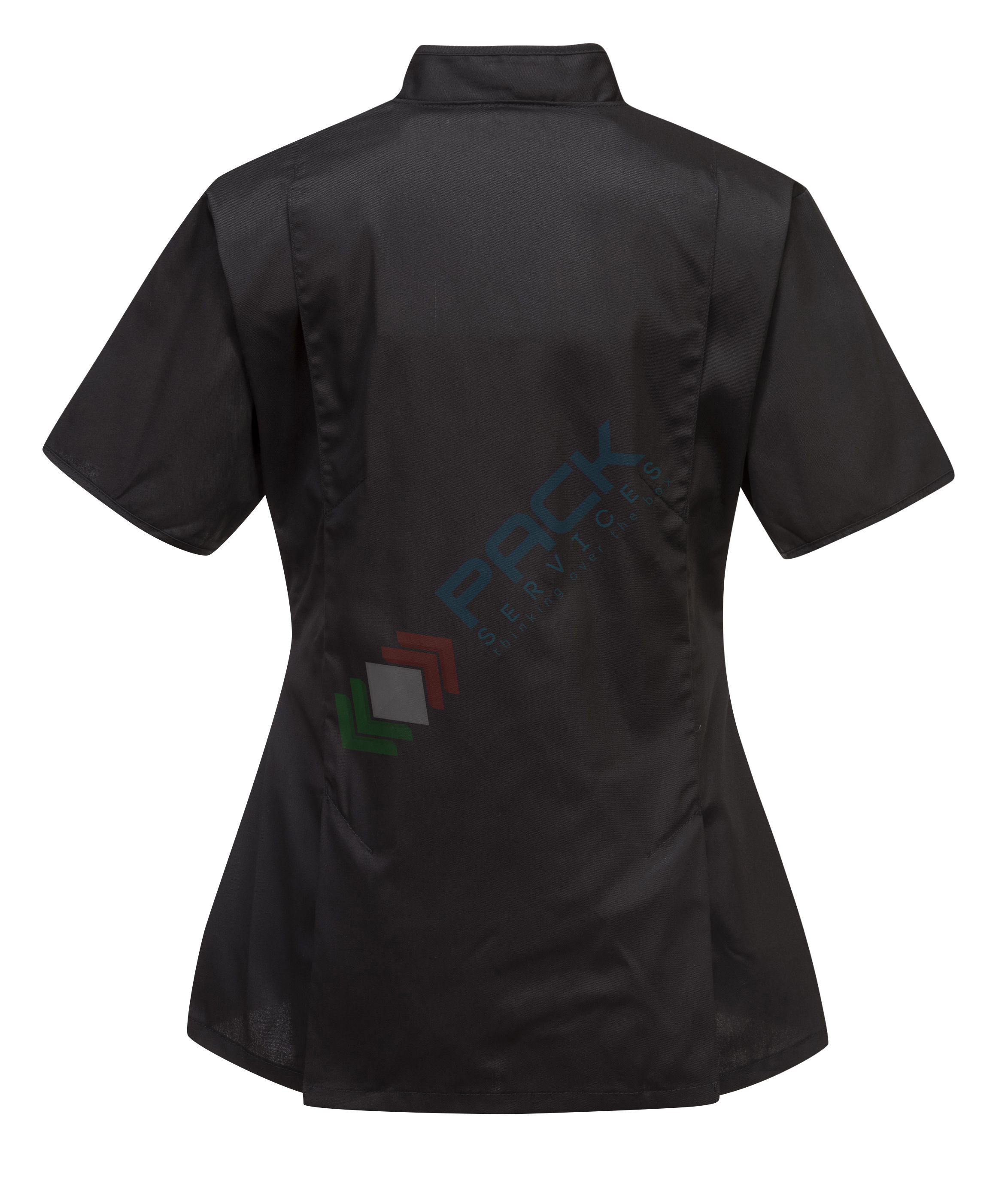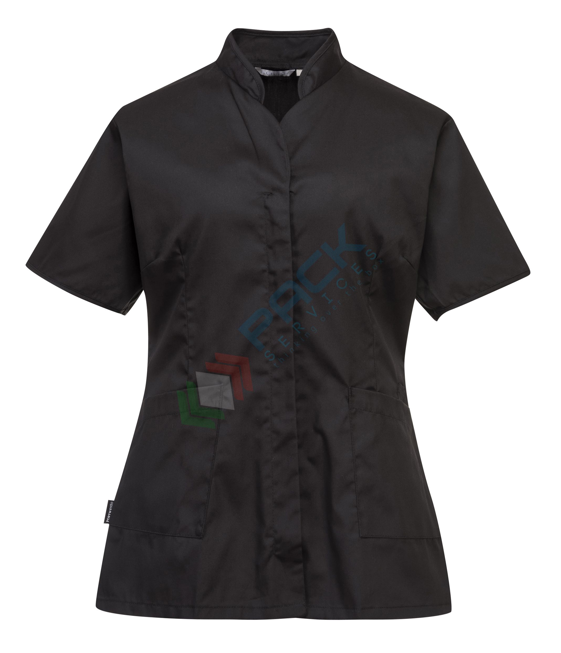 Camice da lavoro, modello sanitario, da donna, 3 tasche, 65% Poliestere + 35% Cotone, 190 gr, chiusura con zip, colore nero