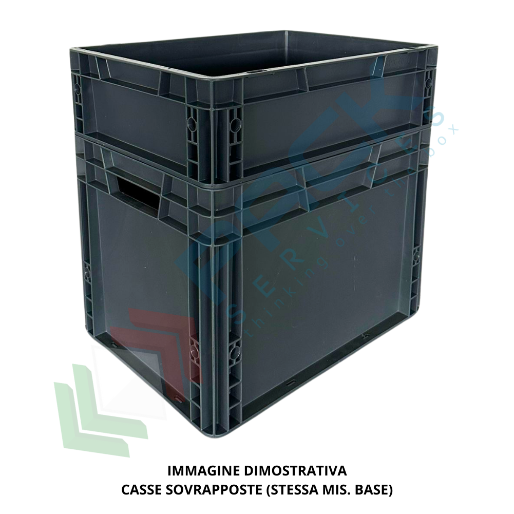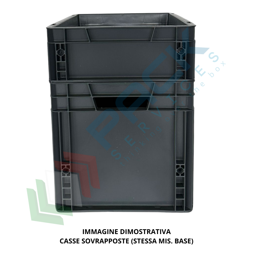 Le dimensioni delle cassette formato EURO sono normalizzate in base agli standard europei, dimensionate per l'utilizzo su pallet con base 80x120 oppure 100x120. Box in plastica ideali per magazzinaggio, produzione e trasporto, realizzate in materiale antiurto. Scatole in plastica sovrapponibili inattaccabili da acidi e solventi, resistenti all'umidità. Colore grigio.