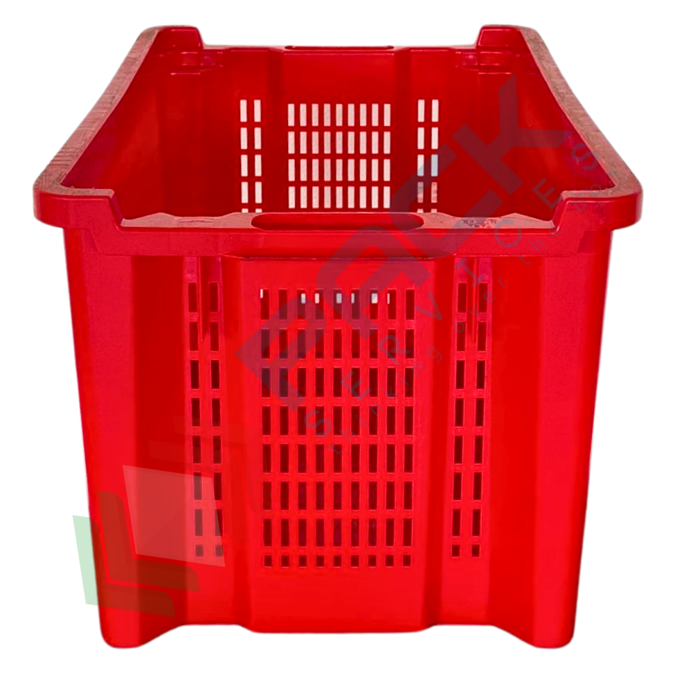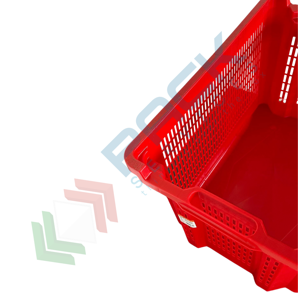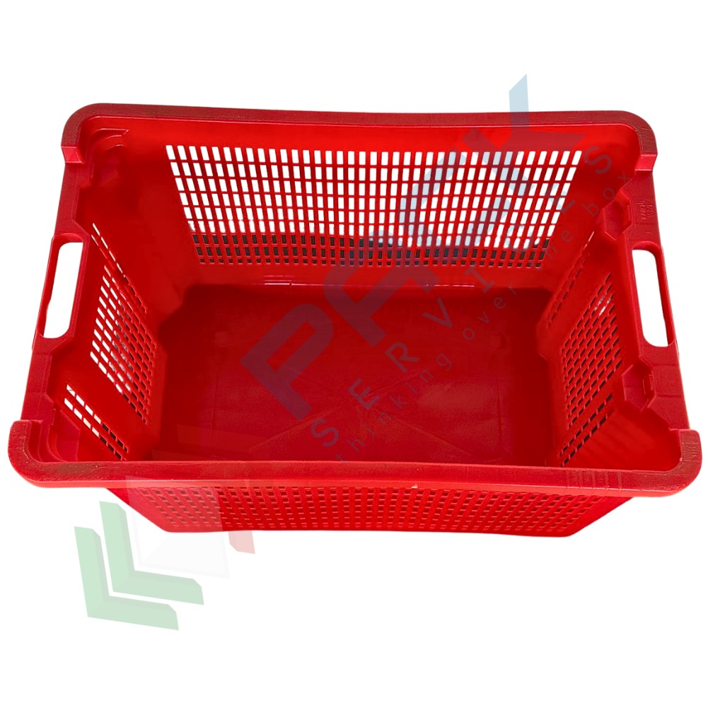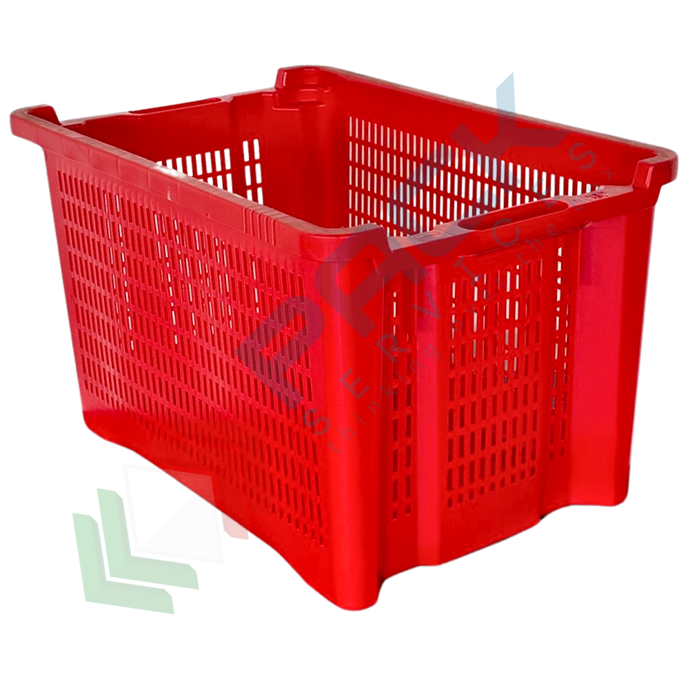 Contenitore in plastica sovrapponibile e inseribile, capacità 40 Lt, Mis. esterna 560 L x 350 P x 310 H mm, Mis. interna 475 L x 325 P x 300 H mm, base chiusa e pareti forate. Cassa in plastica utilizzata nel settore agricolo per la raccolta, il trasporto dell’uva o di altri generi alimentari. La cassetta in plastica presenta il grande vantaggio di occupare metà spazio quando vuota grazie alla sua doppia funzione sovrapponibile ed inseribile. Cassetta inseribile e sovrapponibile resistente agli urti, realizzata in polietilene alta densità (HDPE) idonea al contatto con gli alimenti. Colore rosso.