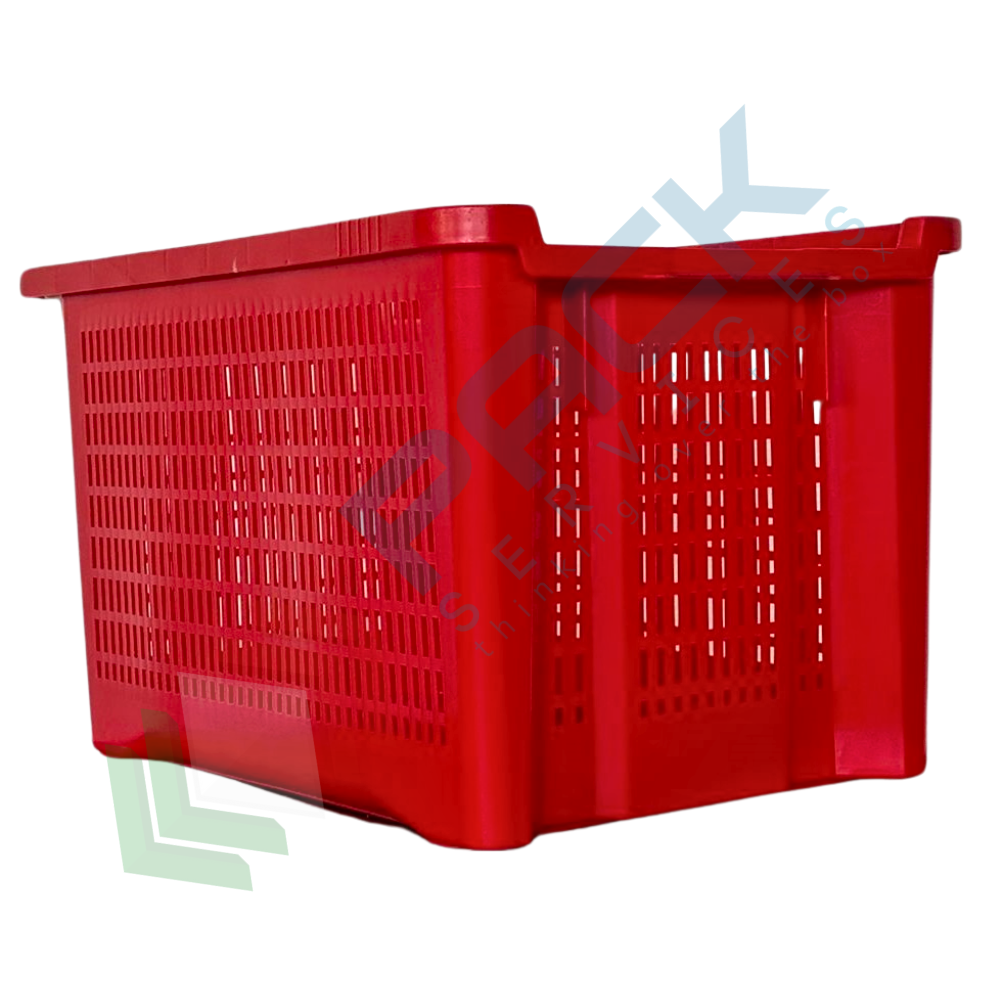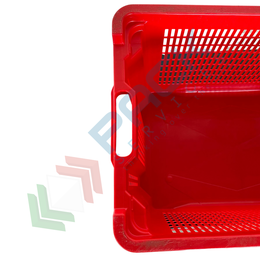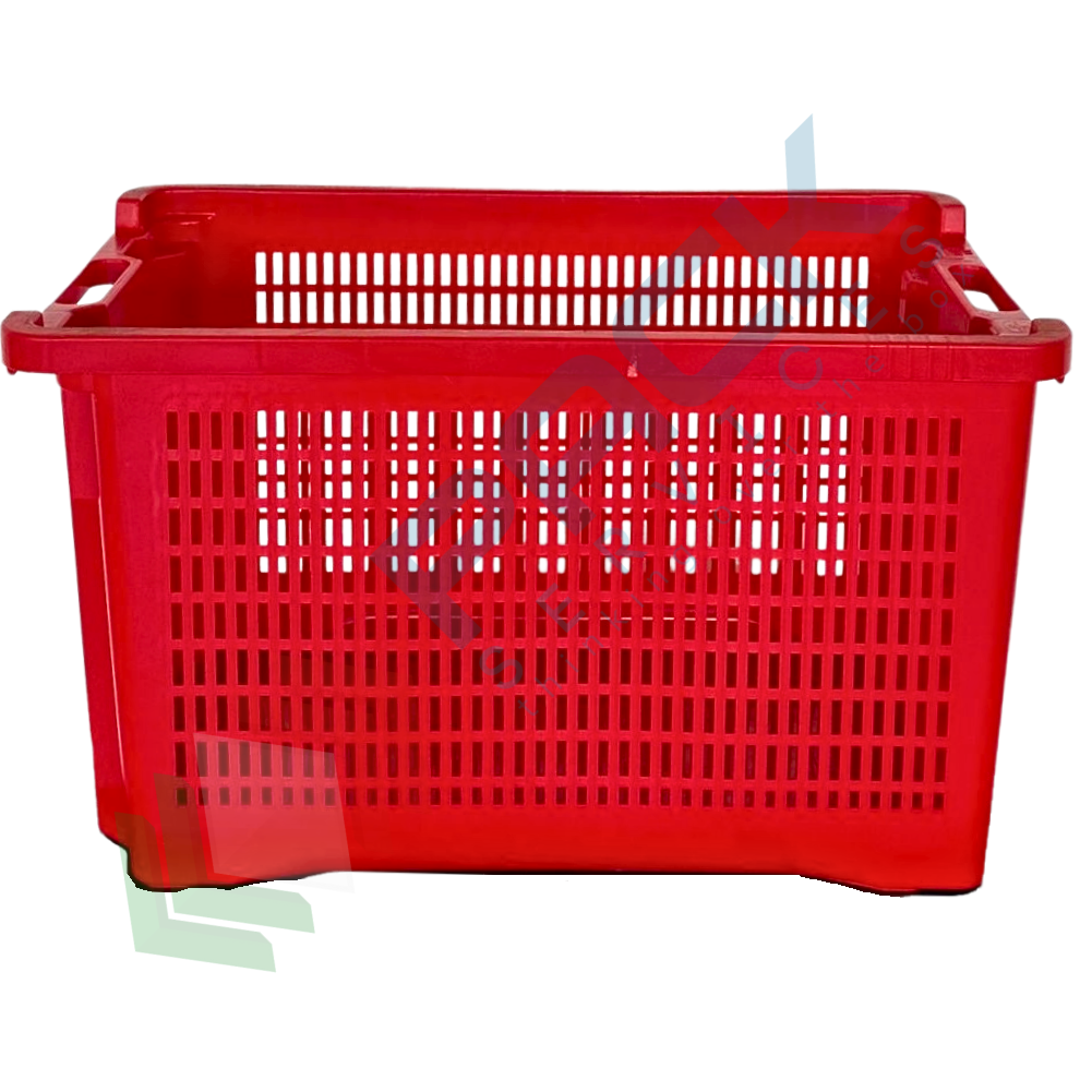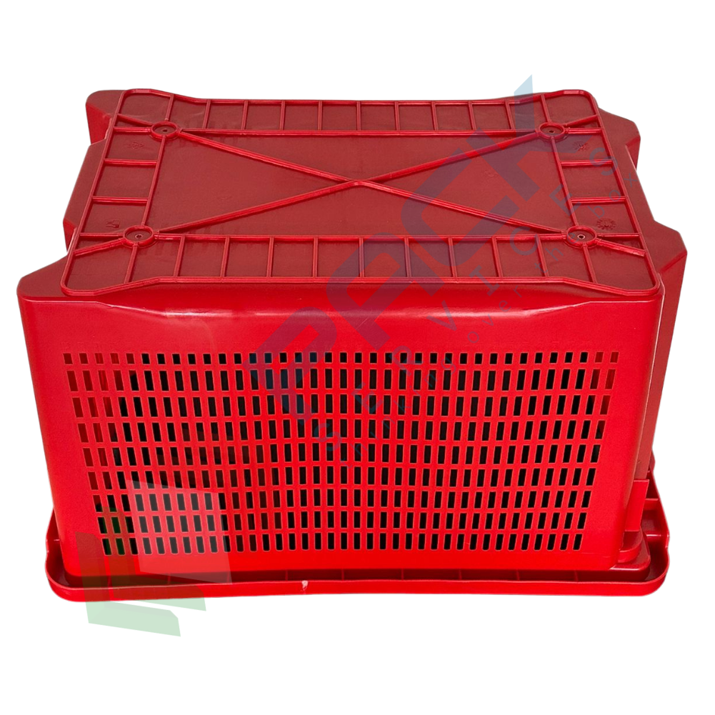 Contenitore in plastica sovrapponibile e inseribile, capacità 40 Lt, Mis. esterna 560 L x 350 P x 310 H mm, Mis. interna 475 L x 325 P x 300 H mm, base chiusa e pareti forate. Cassa in plastica utilizzata nel settore agricolo per la raccolta, il trasporto dell’uva o di altri generi alimentari. La cassetta in plastica presenta il grande vantaggio di occupare metà spazio quando vuota grazie alla sua doppia funzione sovrapponibile ed inseribile. Cassetta inseribile e sovrapponibile resistente agli urti, realizzata in polietilene alta densità (HDPE) idonea al contatto con gli alimenti. Colore rosso.