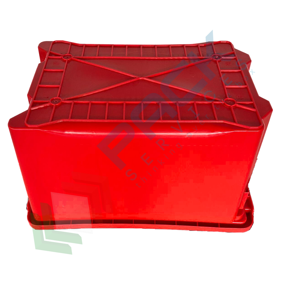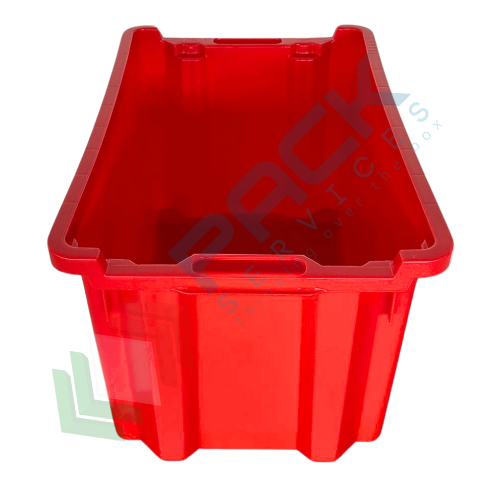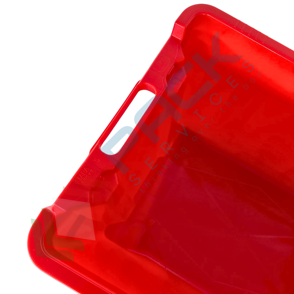 Cassetta in plastica (HDPE) sovrapponibile ed inseribile, capacità 40 Lt, Mis. 560 L x 350 P x 310 H mm, base chiusa e pareti chiuse, colore rosso