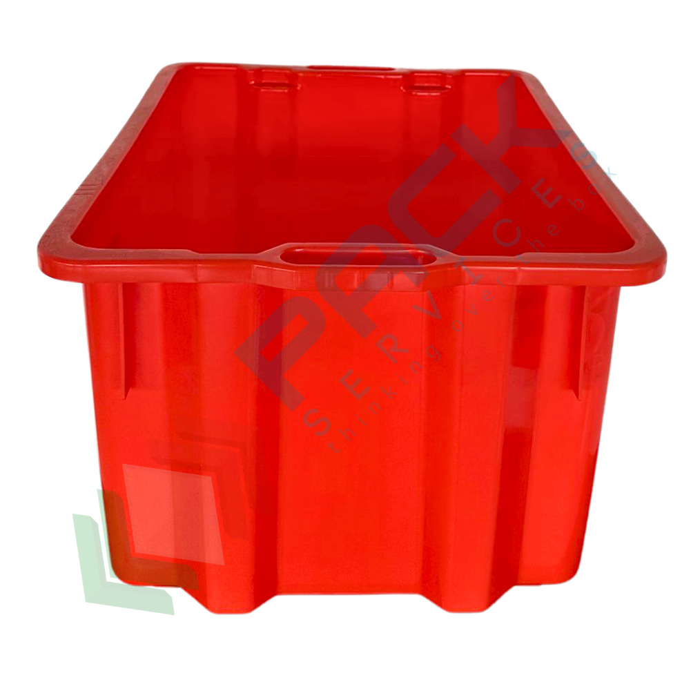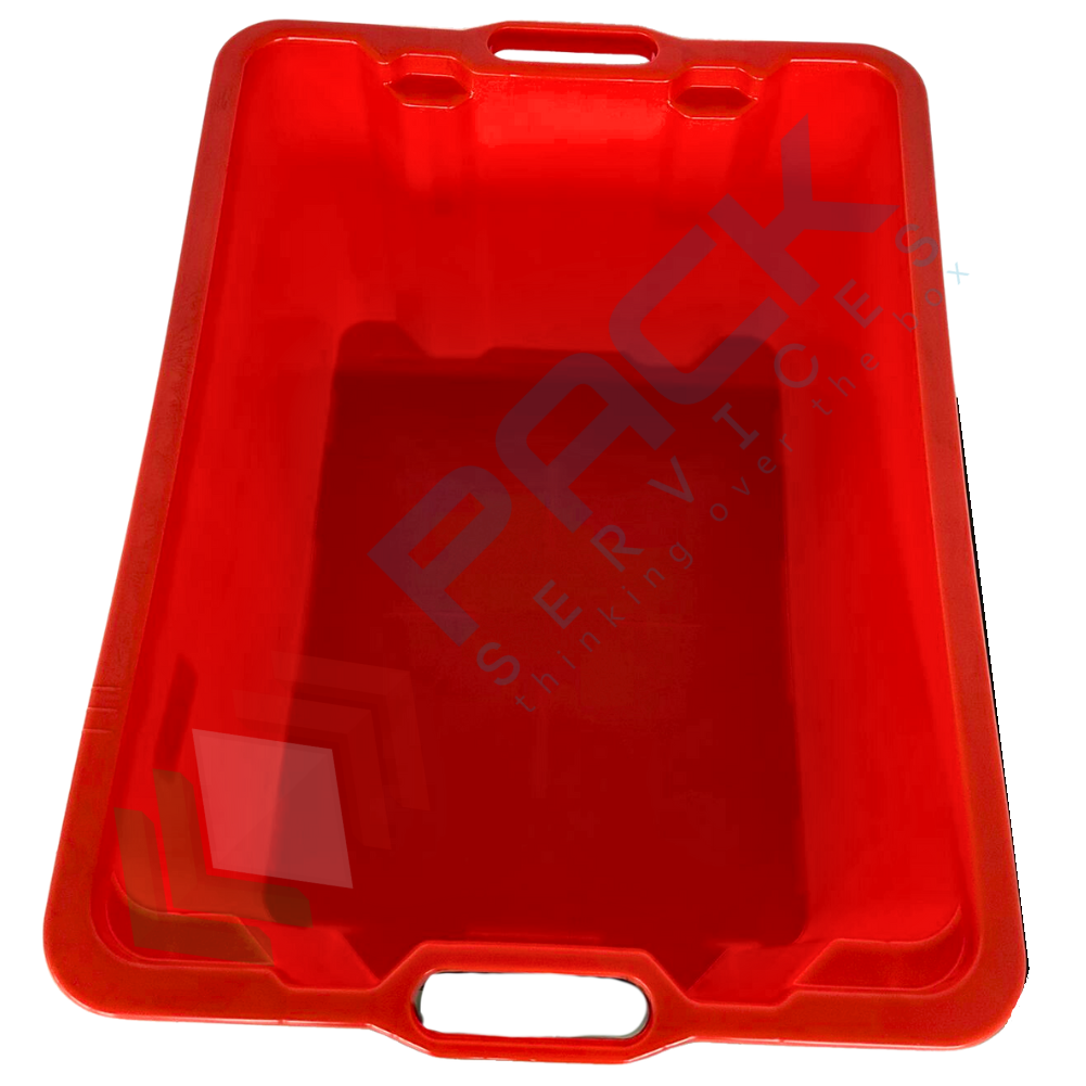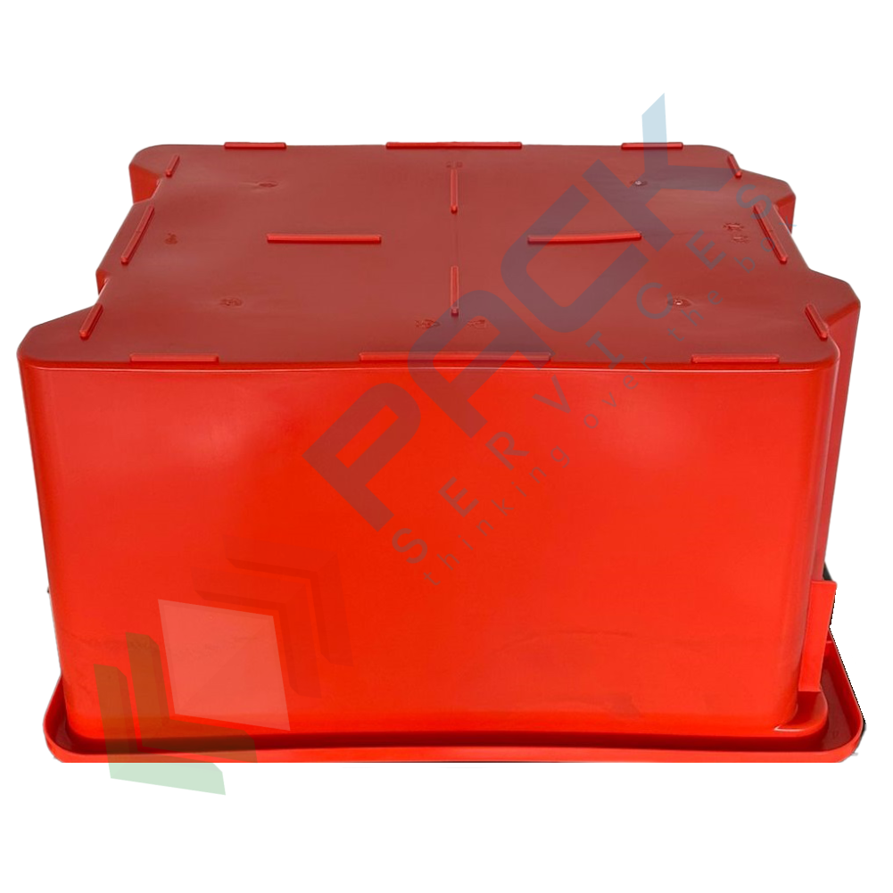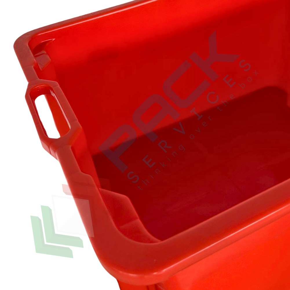 Cassetta in plastica (HDPE) sovrapponibile ed inseribile, capacità 50 Lt, Mis. 520 L x 420 P x 290 H mm, base chiusa e pareti chiuse, colore rosso