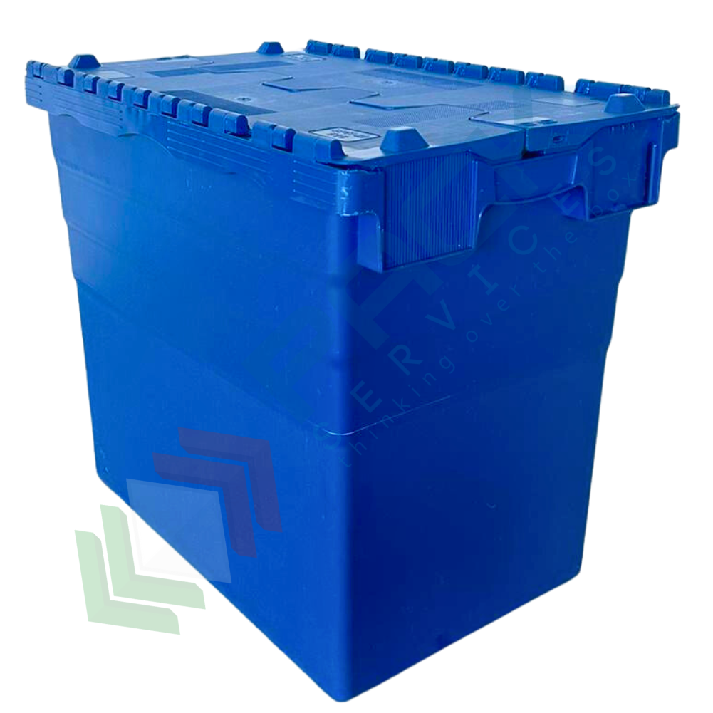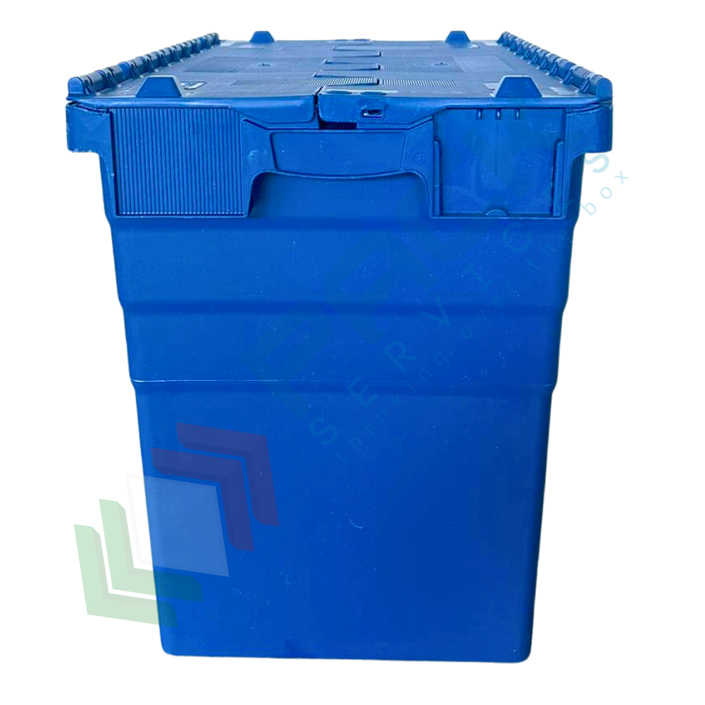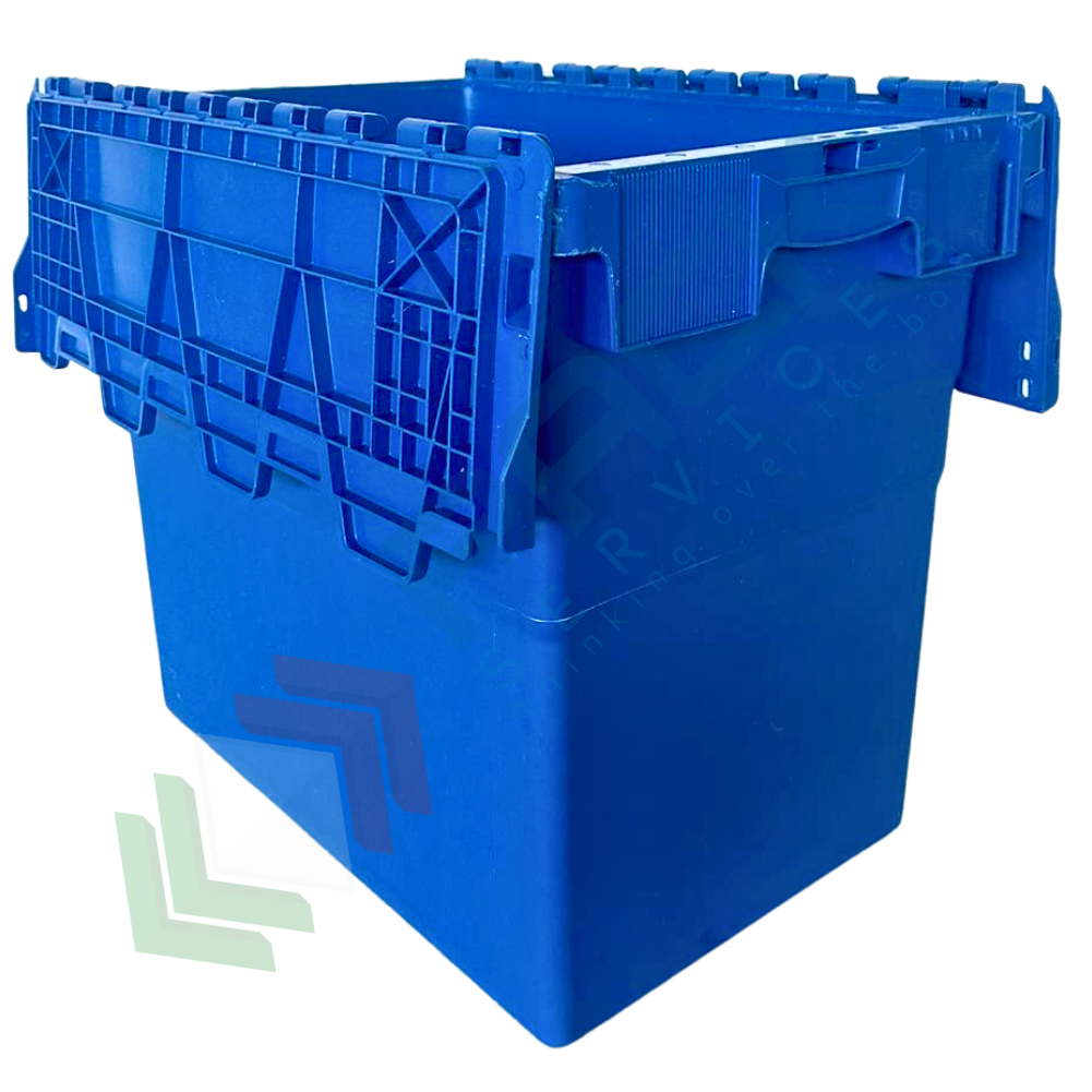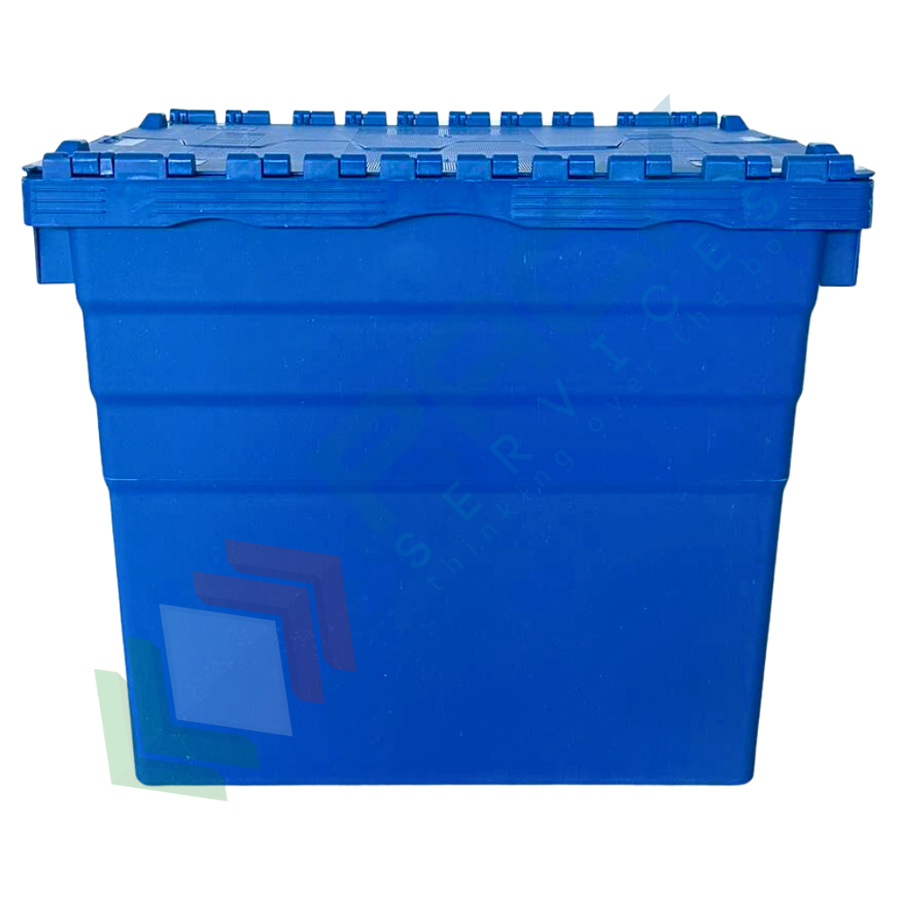 Cassa sovrapponibile ed inseribile in plastica, con coperchio integrato incernierato sui lati lunghi a due falde sigillabile, volume 95 Lt, Mis. esterna superiore 600 L x 400 P x 516 H mm, Mis. interna superiore 540 L x 367 P x 498 H mm. Grazie alla sua forma leggermente conica, da vuota è possibile impilarne una dentro l'altra con poco ingombro o altrimenti una sopra l'altro con il coperchio chiuso formando così delle pile stabili.