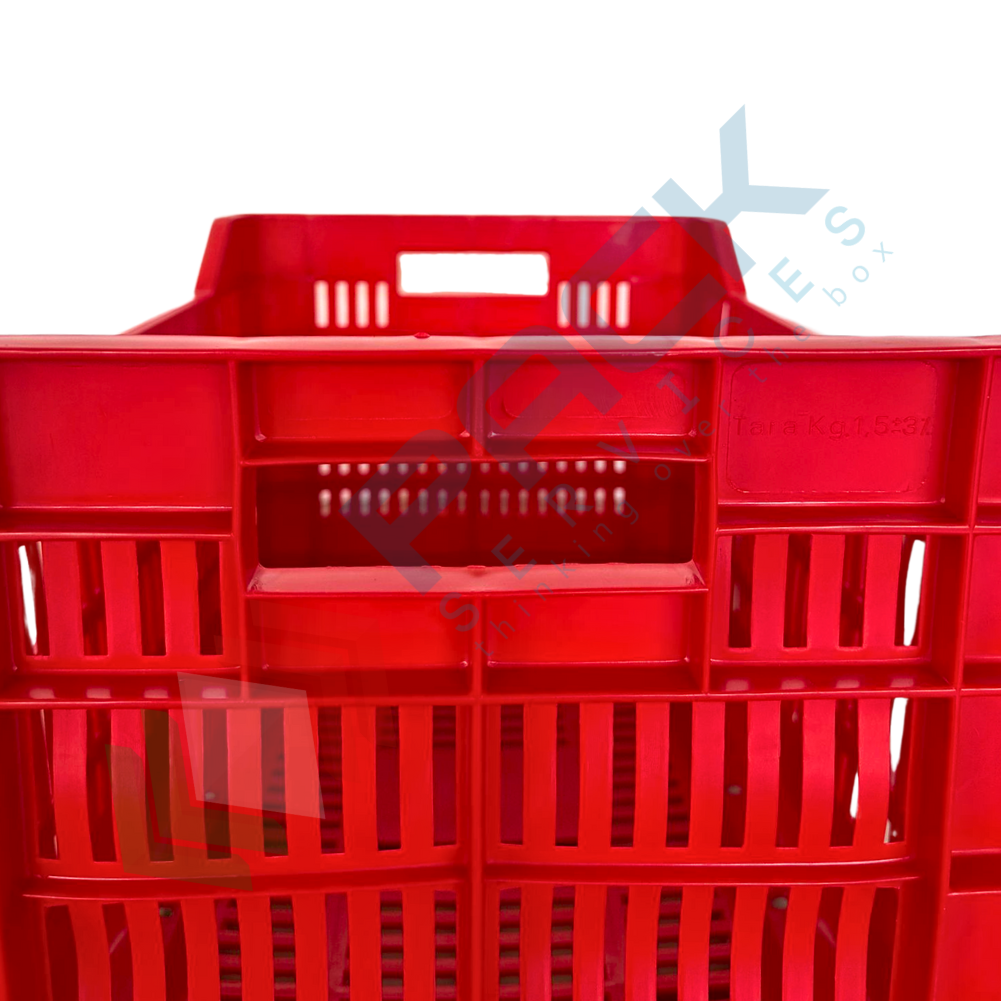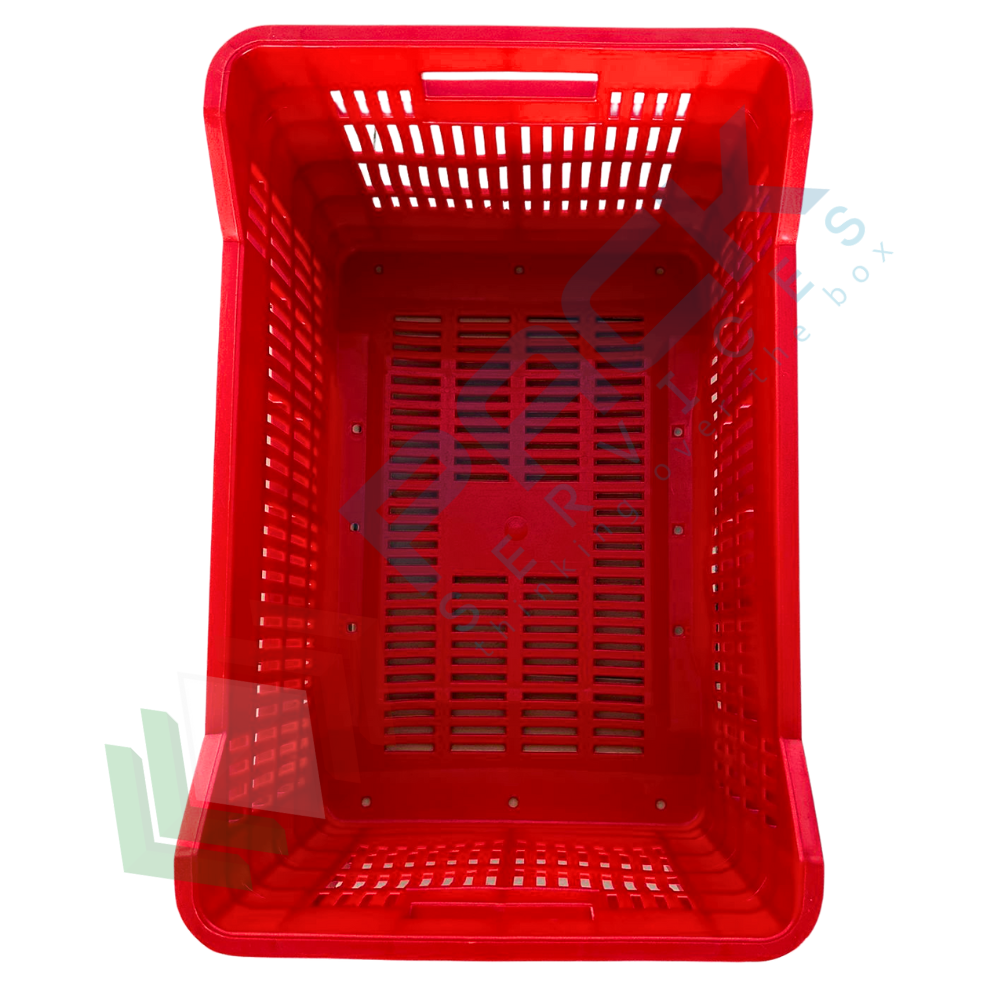 Cassetta ortofrutta in plastica capacità 40 Lt, Mis. 530 L x 360 P x 310 H mm, base e pareti forate. Cassetta in plastica sovrapponibile utilizzata nel settore agricolo per la raccolta, il trasporto dell'uva o di altri generi alimentari. Scatola in plastica che presenta il grande vantaggio di occupare metà spazio quando vuota grazie alla sua funzione sovrapponibile. Cassetta sovrapponibile resistente agli urti, realizzata in polietilene alta densità (HDPE) idonea al contatto con gli alimenti. Portata 20 Kg. Presentano il simbolo e dicitura "per alimenti". Colore rosso.