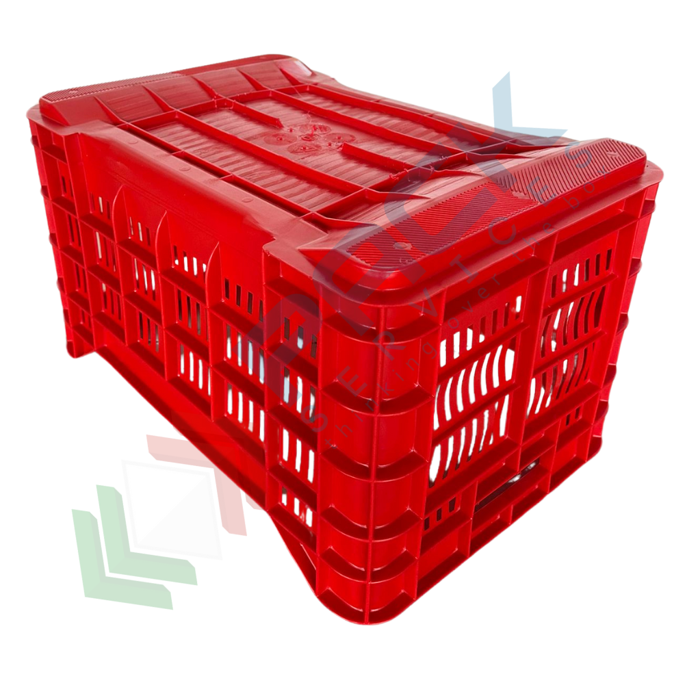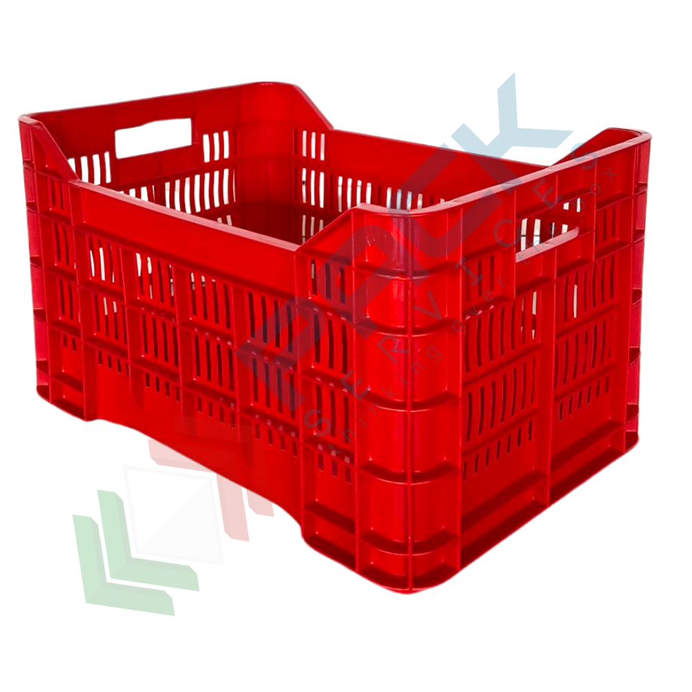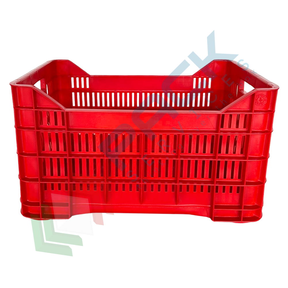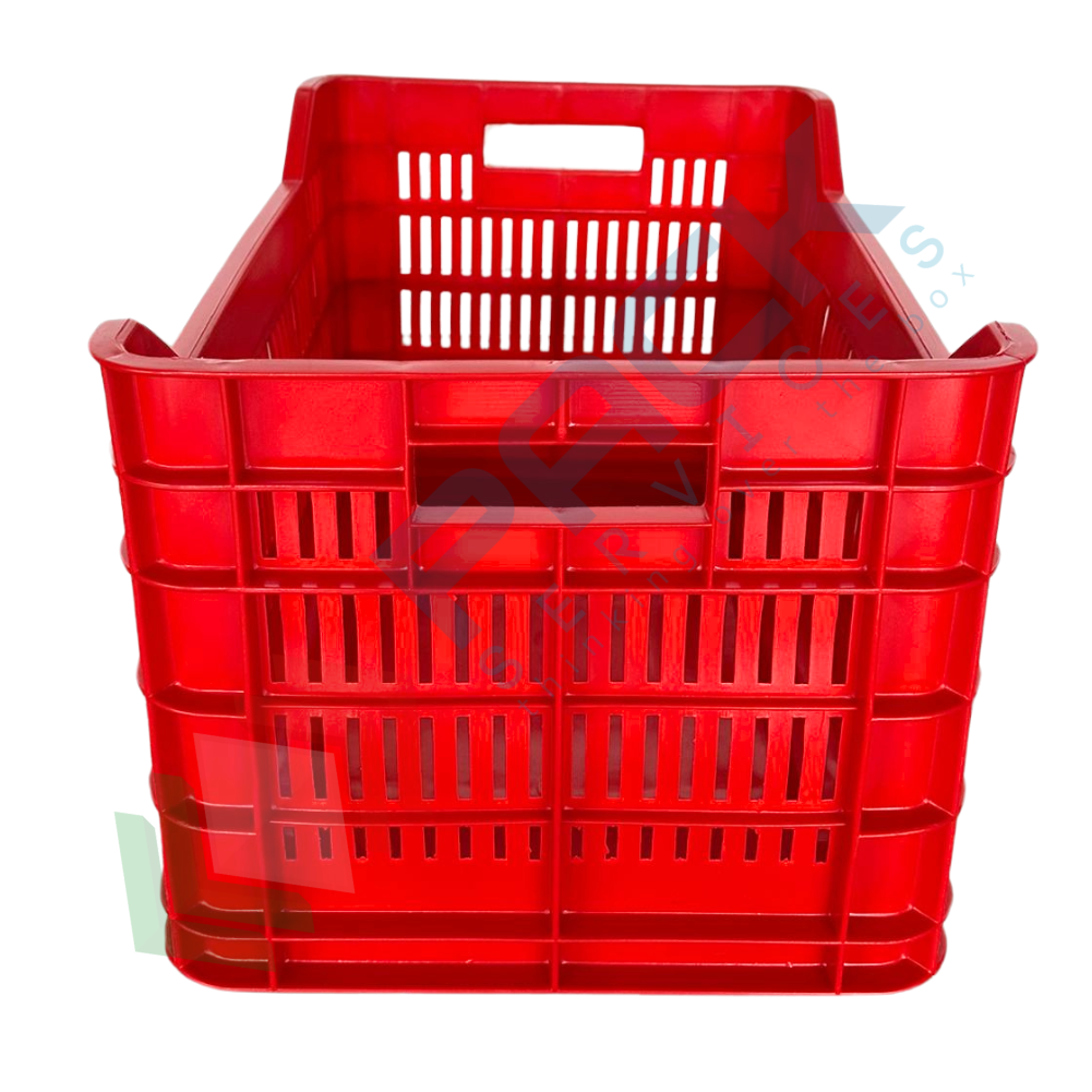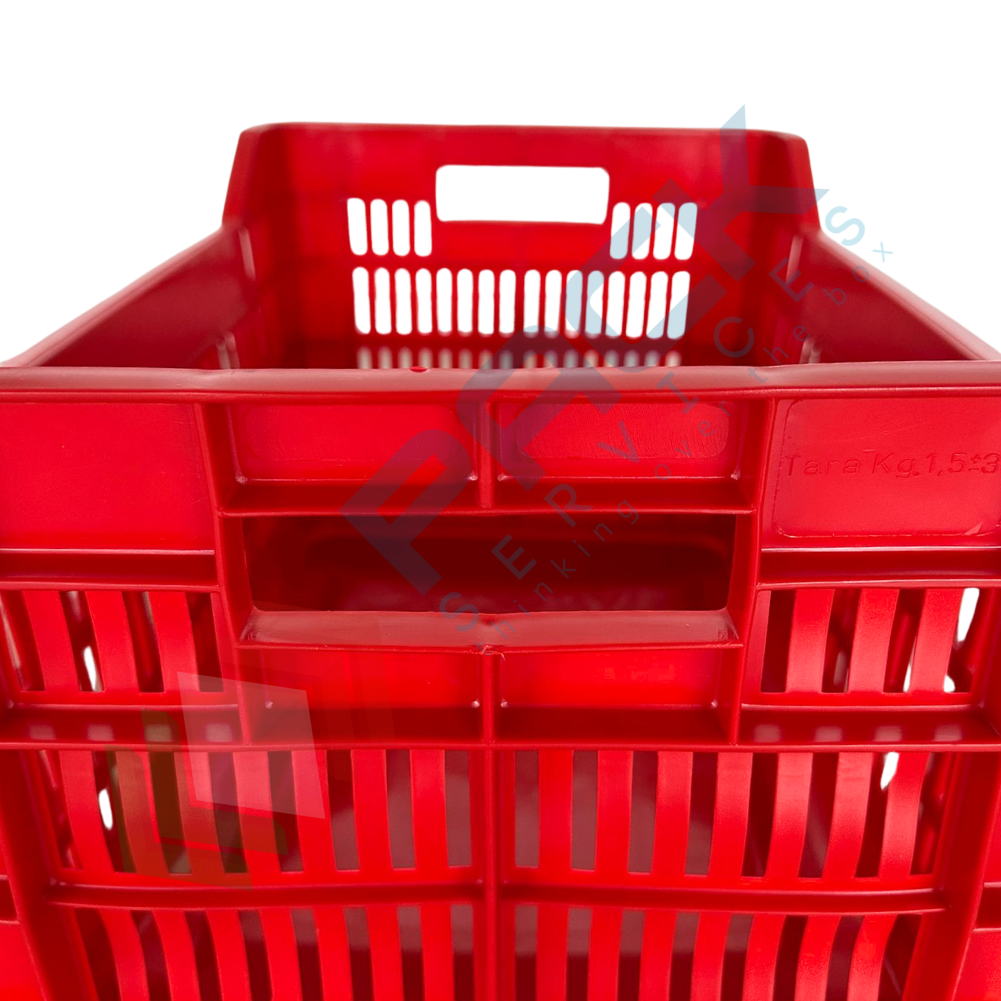 Cassetta ortofrutta in plastica capacità 40 Lt, Mis. 530 L x 360 P x 310 H mm, base chiusa e pareti forate. Cassetta in plastica sovrapponibile utilizzata nel settore agricolo per la raccolta, il trasporto dell'uva o di altri generi alimentari. Scatola in plastica che presenta il grande vantaggio di occupare metà spazio quando vuota grazie alla sua funzione sovrapponibile. Cassetta sovrapponibile resistente agli urti, realizzata in polietilene alta densità (HDPE) idonea al contatto con gli alimenti. Portata 20 Kg. Presentano il simbolo e dicitura "per alimenti". Colore rosso.