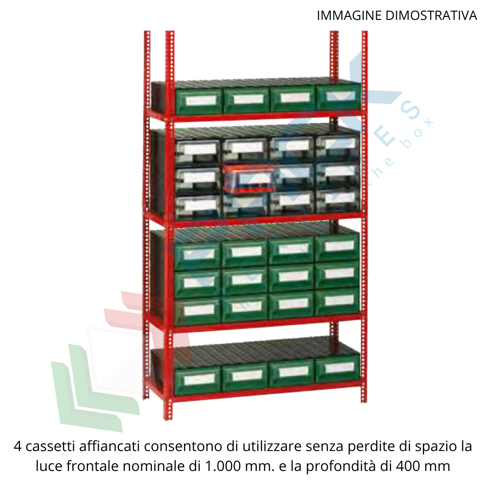 CASSETTIERA PORTAMINUTERIA IN PLASTICA, IDEALE PER SCAFFALI, CASSETTINI PROFONDITÀ 423 MM