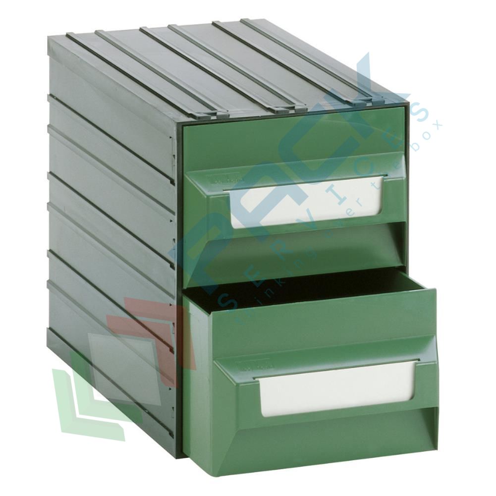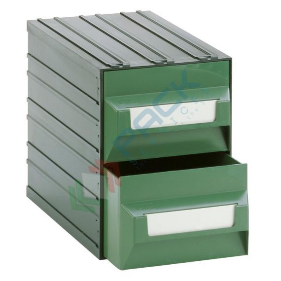 Cassettiera in plastica componibile con 2 cassetti, mis. 169 L x 323 P x 228 H mm, colore verde