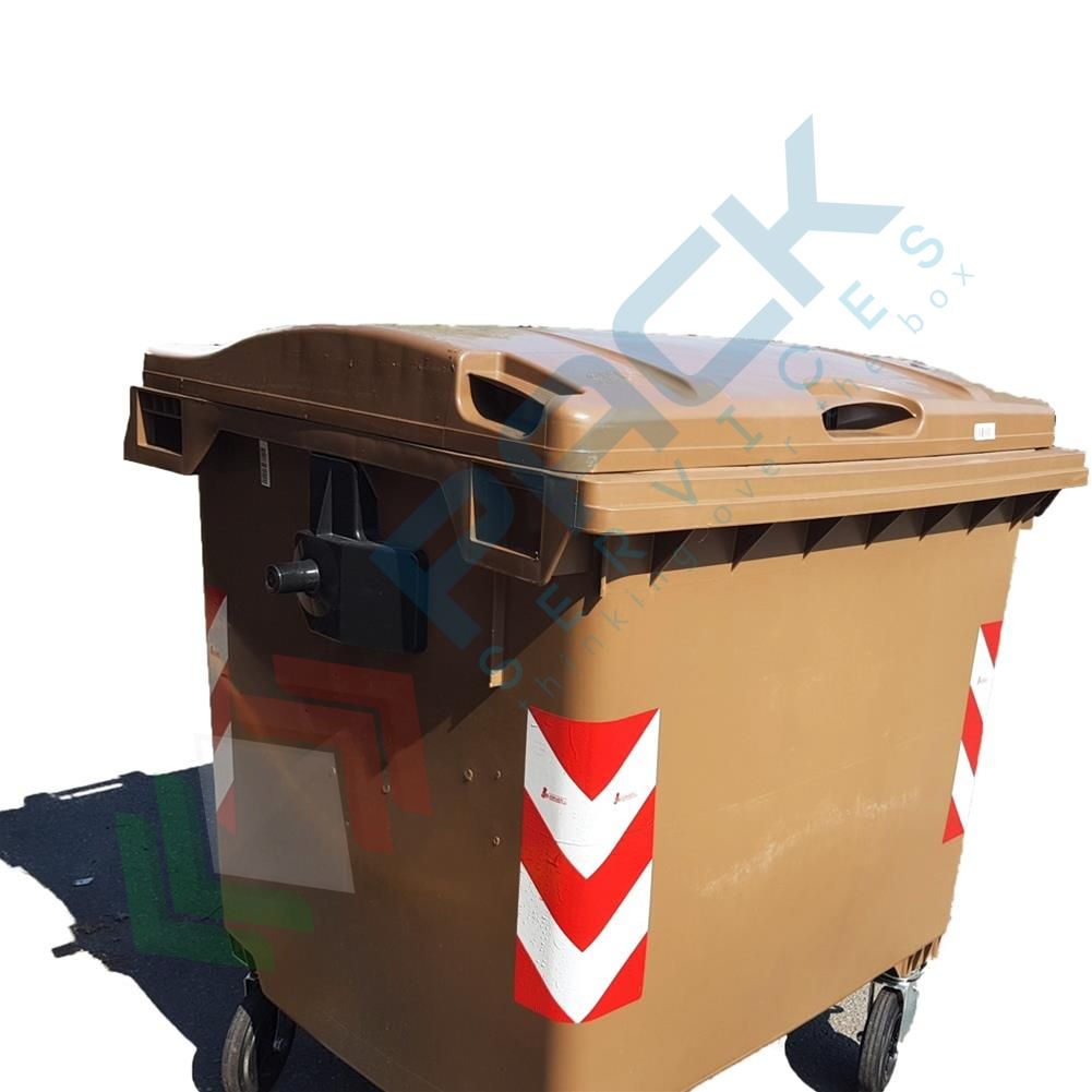 Cassonetto per la raccolta differenziata rifiuti, capacità 1100 Lt, certificato UNI EN 840, attacco maschio DIN 30700, coperchio piano, colore marrone
