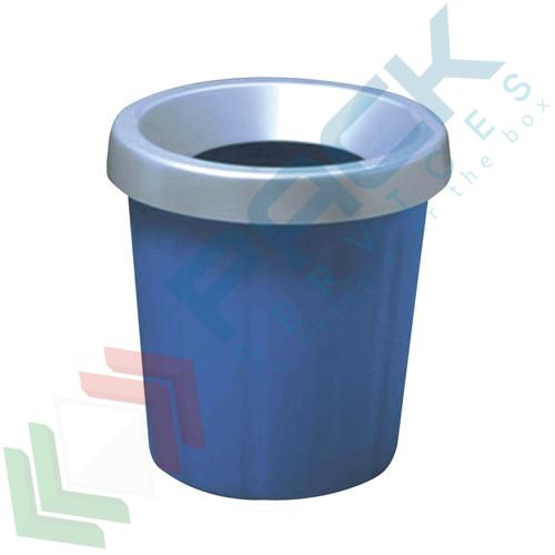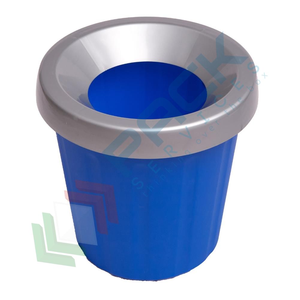 Cestino gettacarte portarifiuti realizzato in plastica, capacità 15 Litri, Mis. Ø 31 x 36 H cm, con fermasacco, fornito senza coperchio. Cestino della carta rotondo che si inserisce perfettamente in qualsiasi arredamento. Pratico per la raccolta differenziata in cucina, per gettare fogli accartocciati e volantini in salotto o in studio; Perfetto anche per l'ufficio. Facile da pulire con un panno umido visto anche le sue forme arrotondate senza spazi dove può rimanere intrappolata polvere, sporco o liquidi. Che sia vicino alla scrivania, in cucina o in bagno, questa pattumiera è ideale per qualsiasi ambiente della casa. Il cestino assemblato con anello fermasacco sorregge un sacco di polietilene 50x60, per la raccolta dei rifiuti di ufficio o assimilabili. Colore blu/grigio.