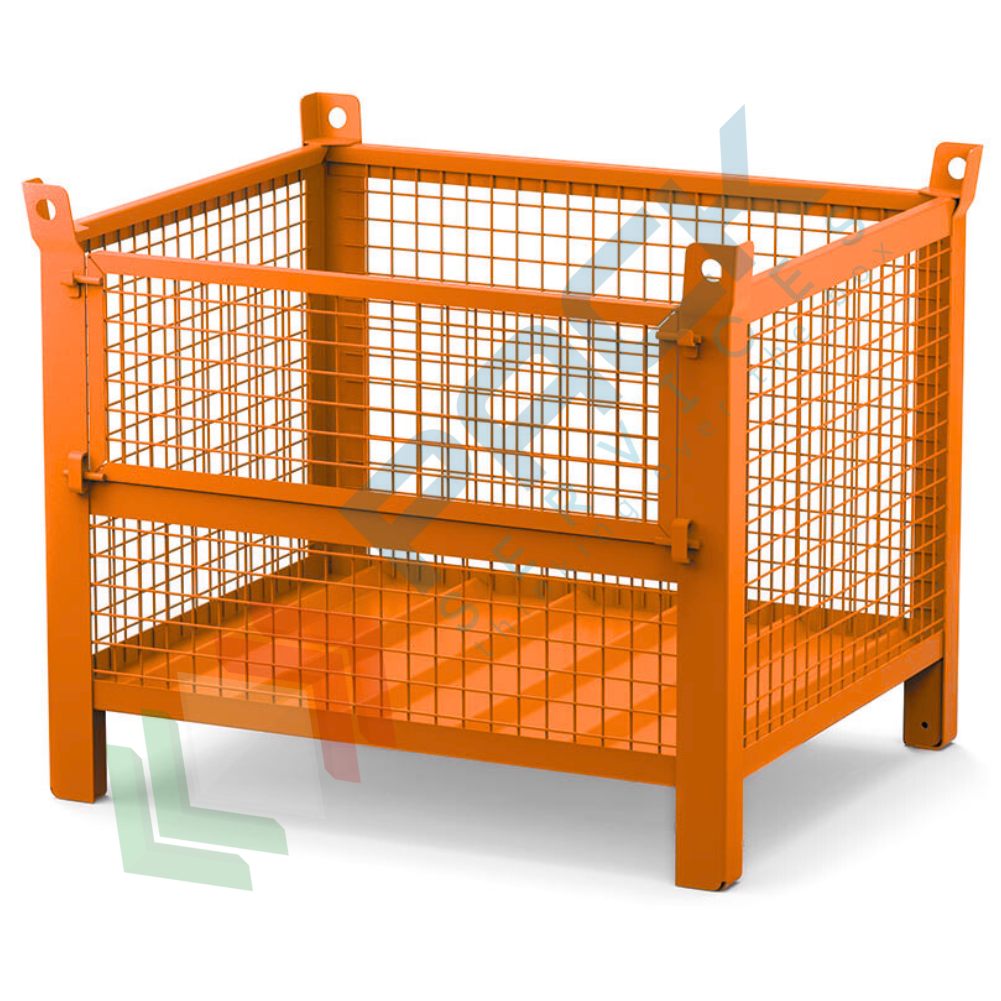 Contenitore in rete di lamiera con piedini e anta, Mis. 1200 L x 1000 P x 1195 H mm, portata 800 Kg, colore arancio RAL 2004
