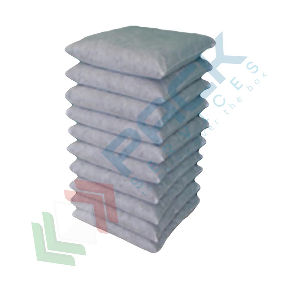 Caratteristiche: Possiedono proprietà idrofile e oleofile sugli idrocarburi, solventi, essenze, gasolio, benzene, toluene, metanolo, ecc.. Risolve ogni problema di spandimento accidentale di liquidi pericolosi o scivolosi, svolgendo in tempi rapidi un'azione di assorbimento con metodo capillare riportando qualsiasi superficie in condizioni di sicurezza. L'involucro in polipropilene conferisce ai cuscini robustezza e resistenza agli strappi, consentendo la loro manipolazione in sicurezza e pulizia per ripetute applicazioni. Adatti per ridurre i costi di smaltimento. Possiedono capacità di assorbimento fino a 19 volte il proprio peso. Per incenerimento non rilascia gas tossici ed il tasso di ceneri è inferiore allo 0,05%