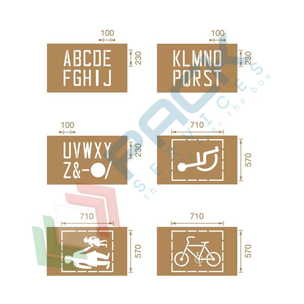 Maschere per segnaletica orizzontale per le esigenze più disparate, realizzate in cartone rinforzato, pensate per facilitare la creazione di segnali particolari su superifici orizzontali.