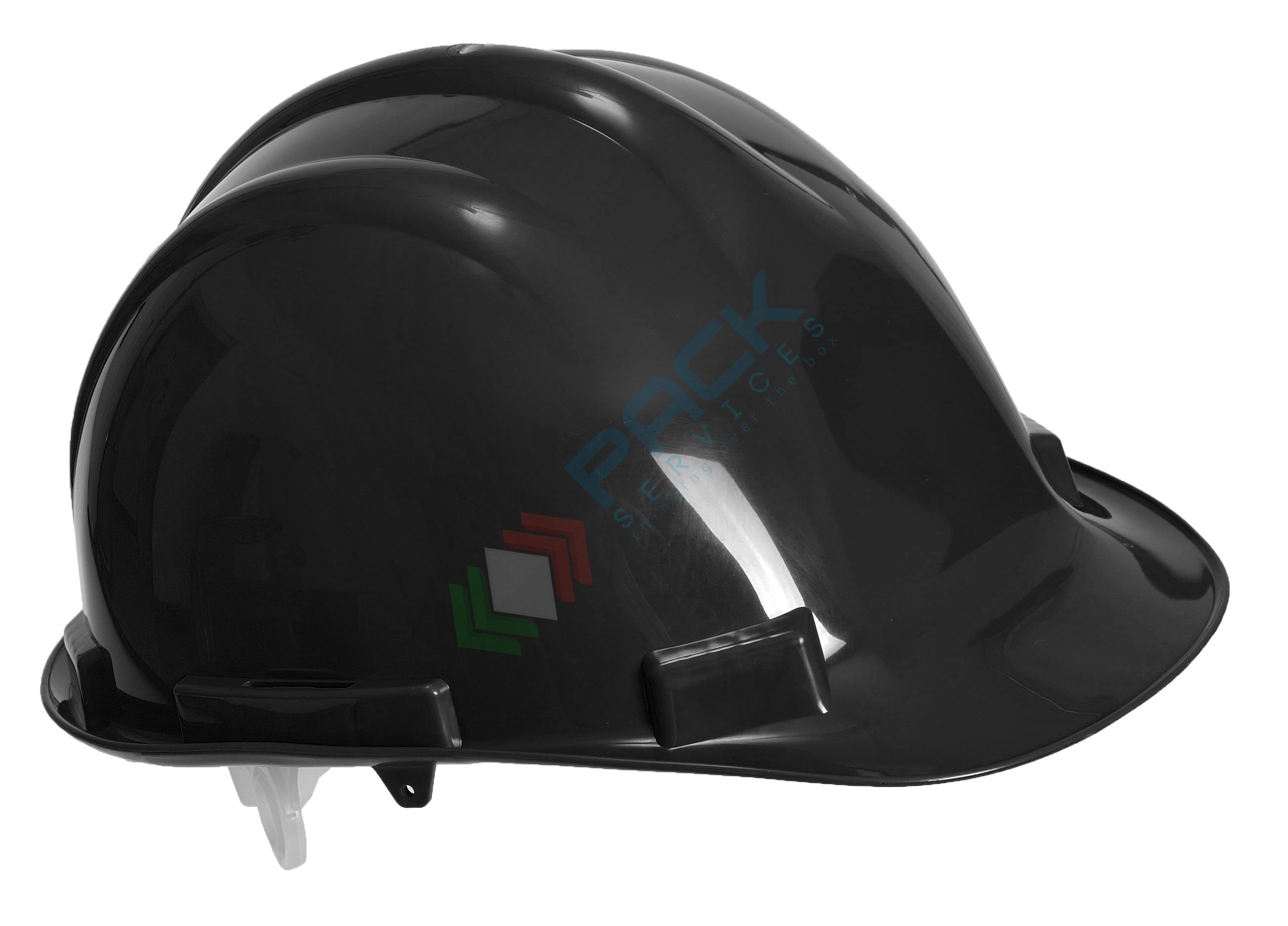 Casco da lavoro con calotta in polipropilene + polietilene non ventilata, imbracatura di sospensione a 4 punti, modello Expertbase, certificato EN 397 + EN 50365, taglia regolabile 55-62 cm, colore nero
