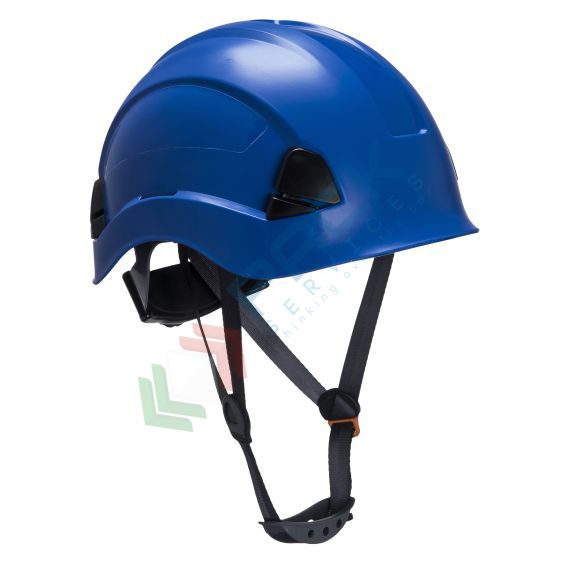 Casco da lavoro con calotta in ABS non ventilata, ideale per lavori in altezza, isolamento elettrico fino a 1000Vac o 1500Vdc (EN 50365), imbracatura di sospensione a 6 punti, taglia regolabile 52-63 cm, colore blu royal