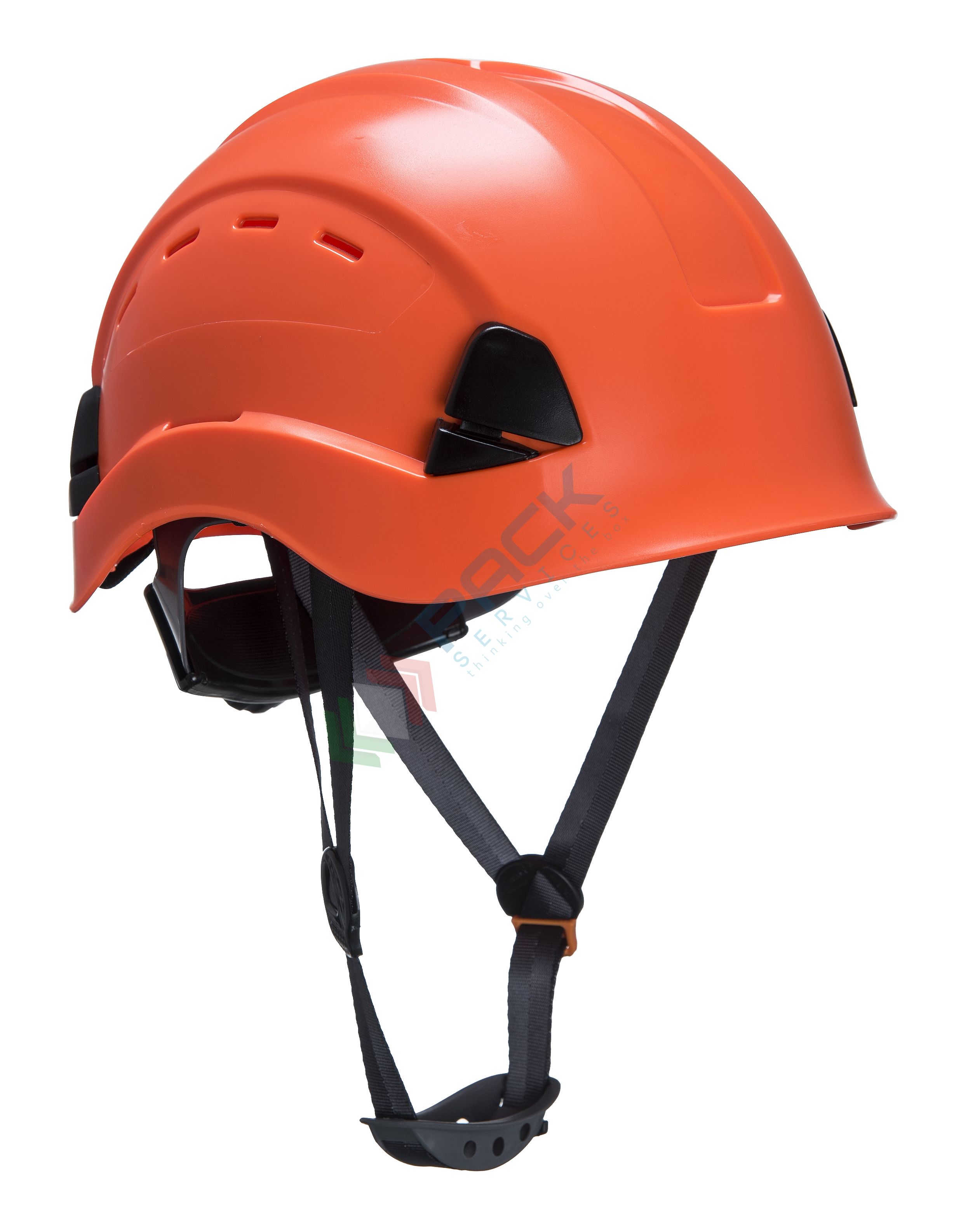 Casco da lavoro con calotta in ABS ventilata, ideale per lavori in altezza, imbracatura di sospensione a 6 punti, modello Height Endurance, taglia regolabile 52-63 cm, colore arancione