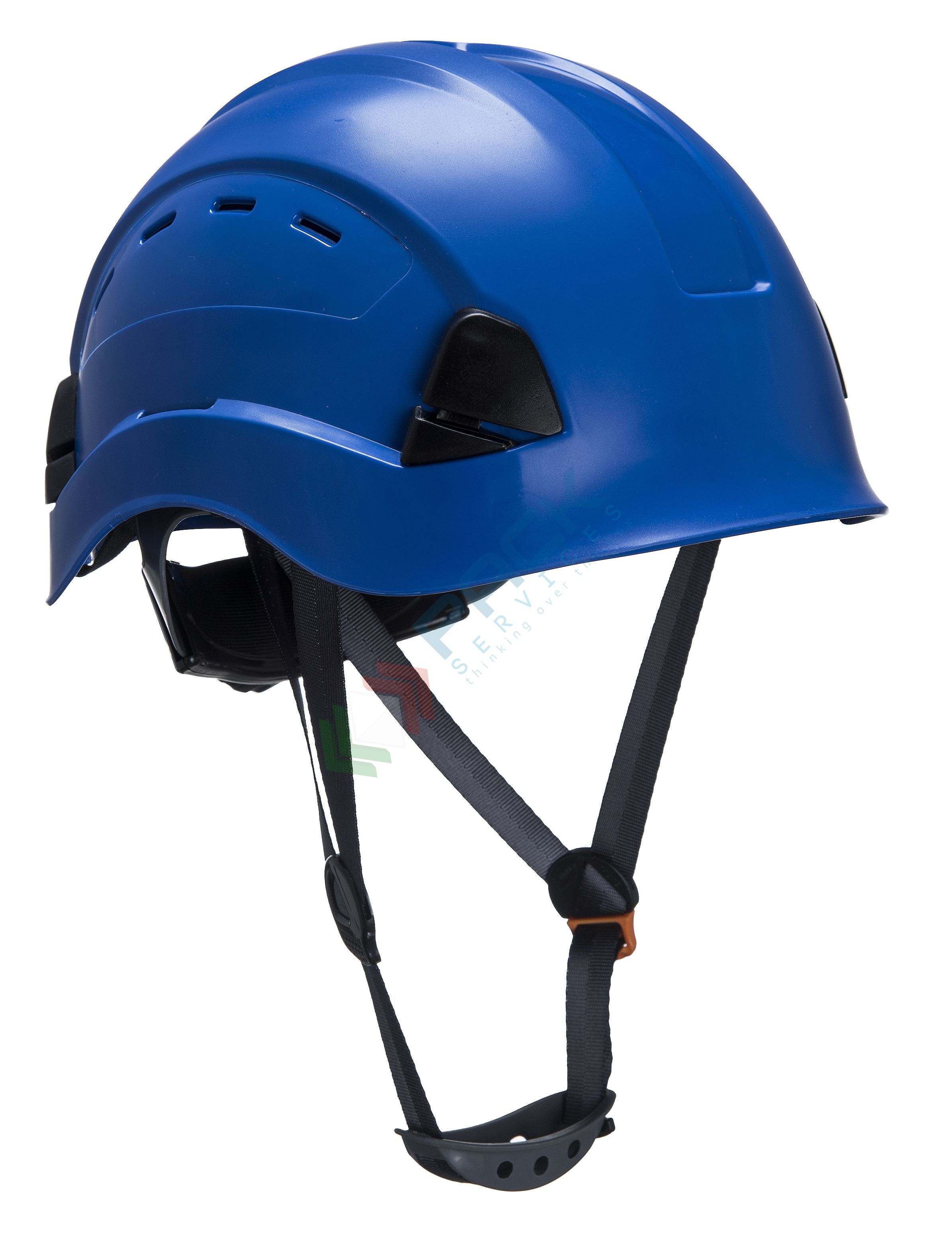 Casco da lavoro con calotta in ABS ventilata, ideale per lavori in altezza, imbracatura di sospensione a 6 punti, modello Height Endurance, taglia regolabile 52-63 cm, colore blu royal