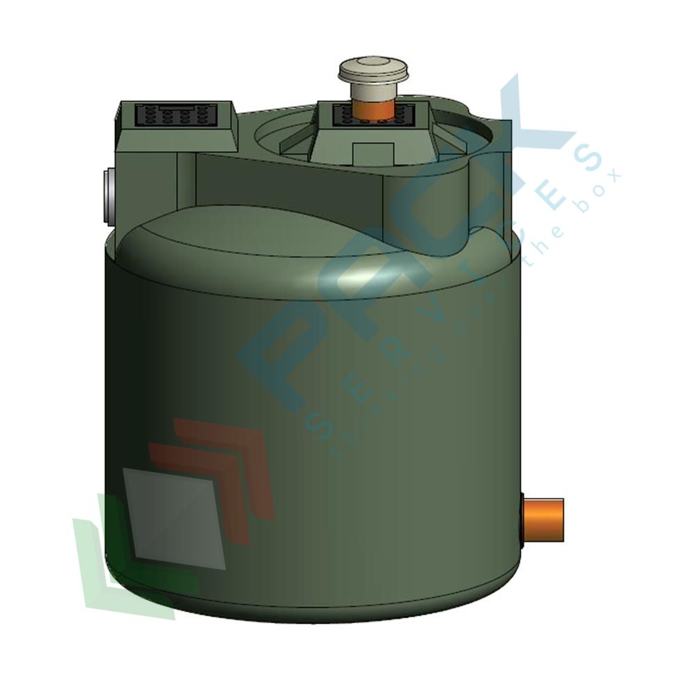 Filtro percolatore aerobico, A.E. 5, mis. 780 L x 1000 P x 1000 H mm, capacità 500 Lt. Filtri percolatori aerobici idonei per il trattamento secondario dei reflui domestici in generale delle acque nere confluenti nel collettore fognario mediante digestione aerobica. Filtri realizzati in polietilene lineare mediante lo stampaggio rotazionale. Contenitori monolitici, ossia stampati in un unico pezzo senza giunzioni. Le caratteristiche del refluo trattato risultano accettabili secondo il Decreto Legislativo 3 Aprile 2006 n. 152 TAB 3 Allegato 5 e successive modifiche. Sono composti da un vano principale di ossidazione che accoglie il materiale plastico di riempimento.